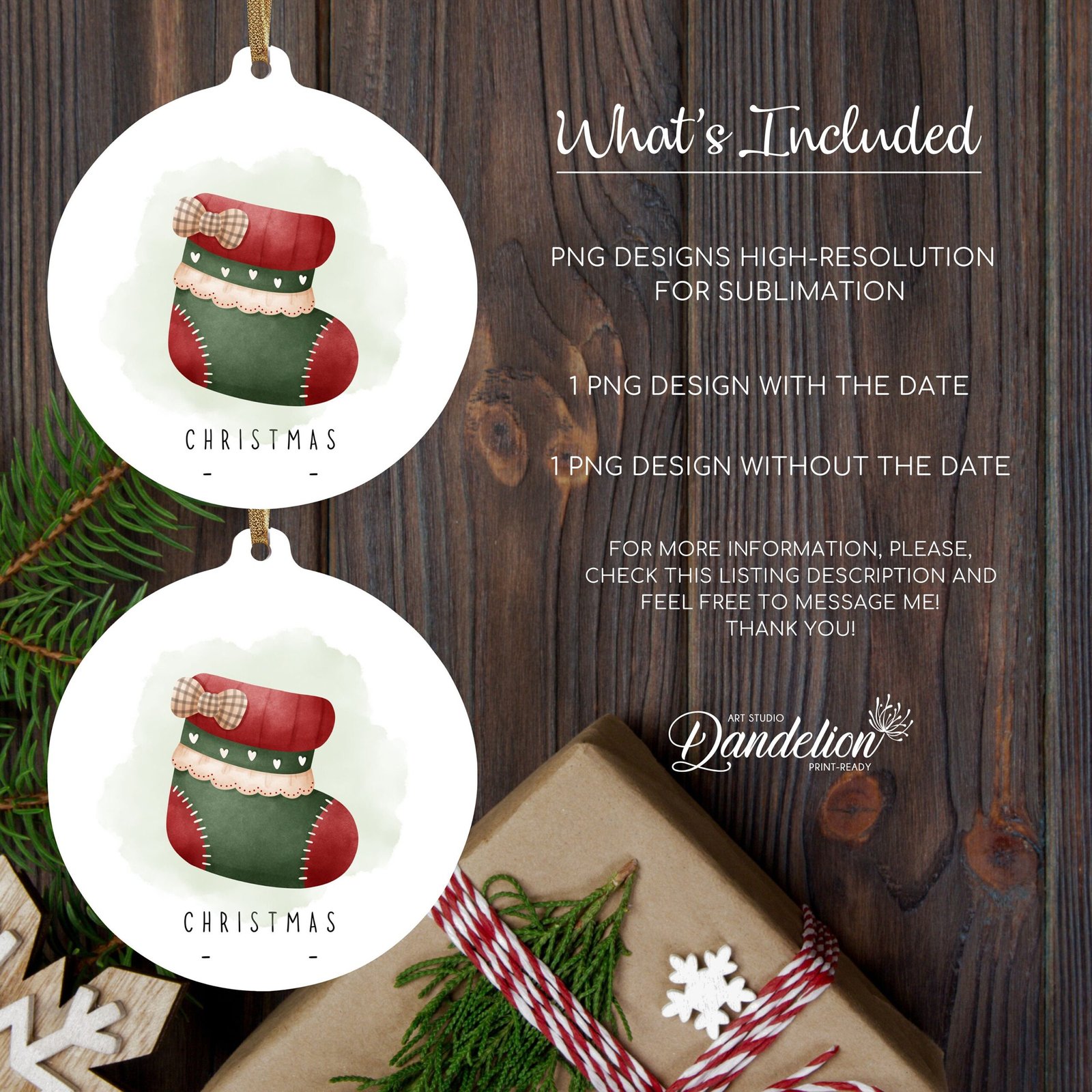 Personalized Christmas Ornament, Cute Xmas Sock PNG Instant Download, Christmas Keepsake Sublimation Template, PNG Wrap Transfers Design.