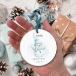 Personalized Christmas Ornament PNG, Baby Snowman PNG, Christmas Keepsake Sublimation, Christmas Round Ornament Design, Xmas Custom Bauble.