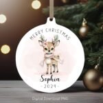 Personalized Christmas Ornament PNG Bundle, Round Xmas Ornament Sublimation, Christmas Reindeer PNG, Xmas Deer PNG, Custom Xmas Bauble Png.