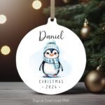 Personalized Christmas Ornament PNG Bundle, Round Xmas Ornament Sublimation, Christmas Snowman PNG, Xmas Penguin PNG, Custom Xmas Bauble Png