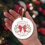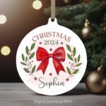 Personalized Christmas Ornament PNG, Xmas Coquette Bow PNG, Christmas Keepsake Sublimation, Xmas Bauble PNG, Round Christmas Ornament Png.