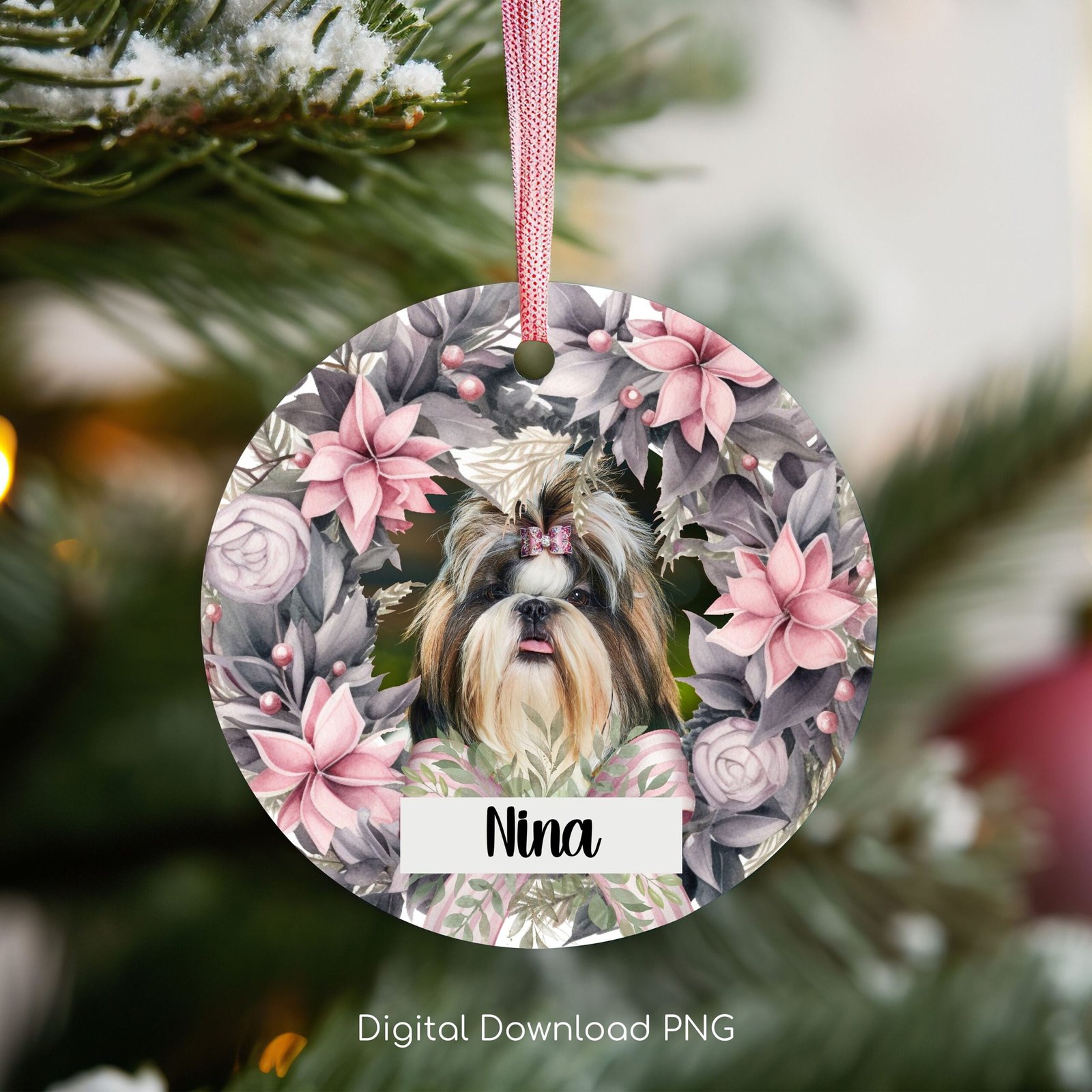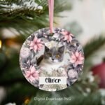 Personalized Christmas Pet Round Ornament PNG, Christmas Gift Ornament, Custom Cat Photo Christmas Sublimation Template, Instant Download.