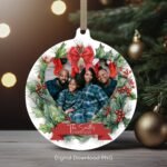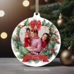 Personalized Christmas Photo Family Round Ornament PNG, 1st Xmas Family Ornament, Custom Xmas Family Sublimation Template, Instant Download.