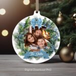 Personalized Christmas Photo Family Round Ornament PNG, Christmas Gift Ornament, Custom Xmas Family Sublimation Template, Instant Download.