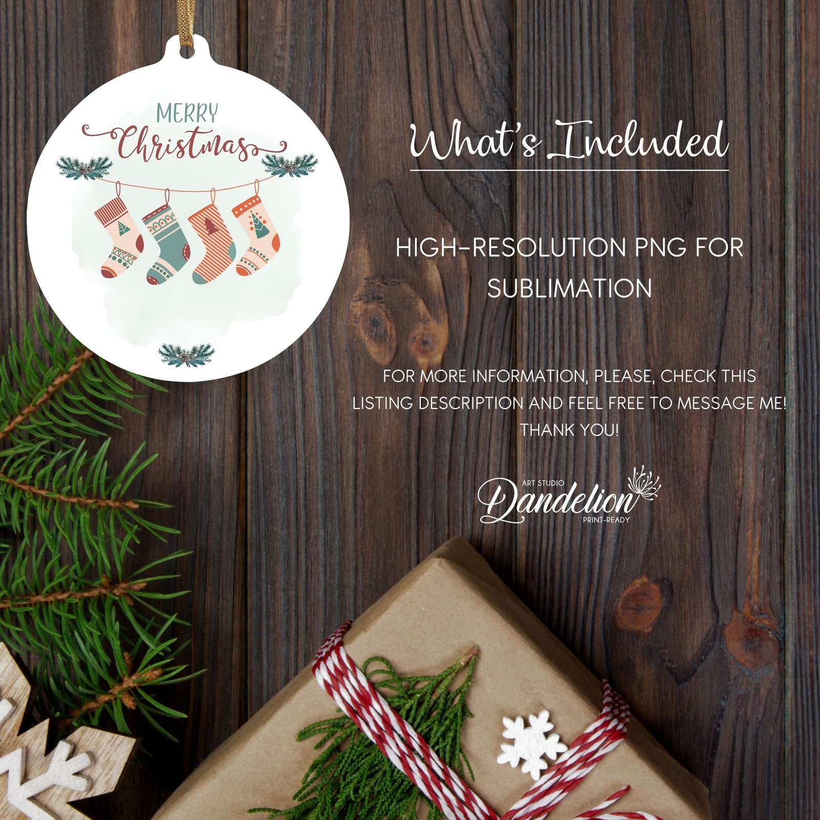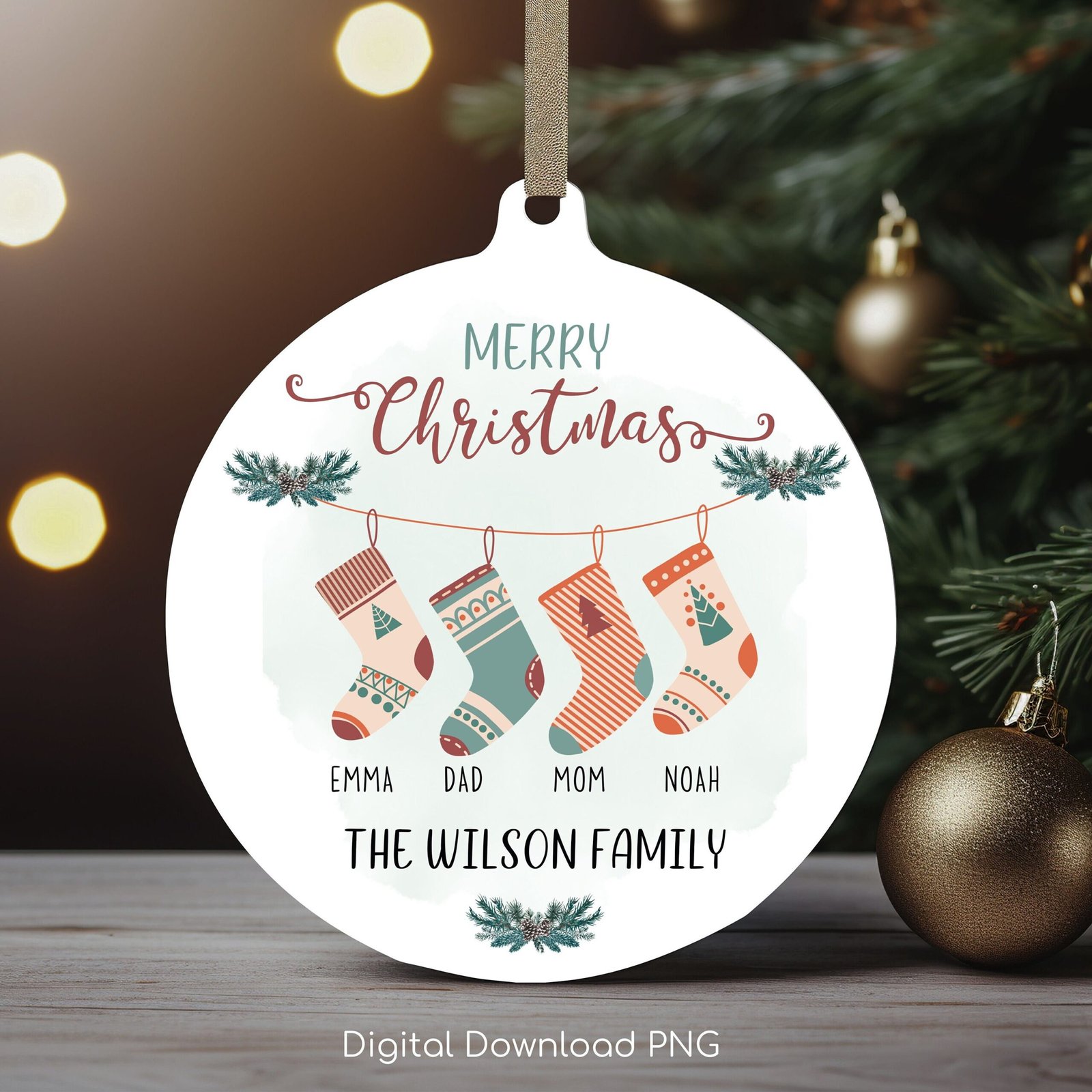 Personalized Family Christmas Hanging Socks Round Ornament PNG, Christmas Family Ornament PNG Sublimation Template, Design Instant Download.