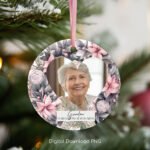 Personalized Memorial Christmas Round Ornament PNG, Memorial Heart Photo Ornament PNG, In Memory Keepsake Photo Template, Instant Download.