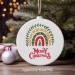 Round Christmas Ornament, Christmas Rainbow PNG Instant Download, Sublimation Designs Downloads, Wrap Transfers Design-High-Resolution.