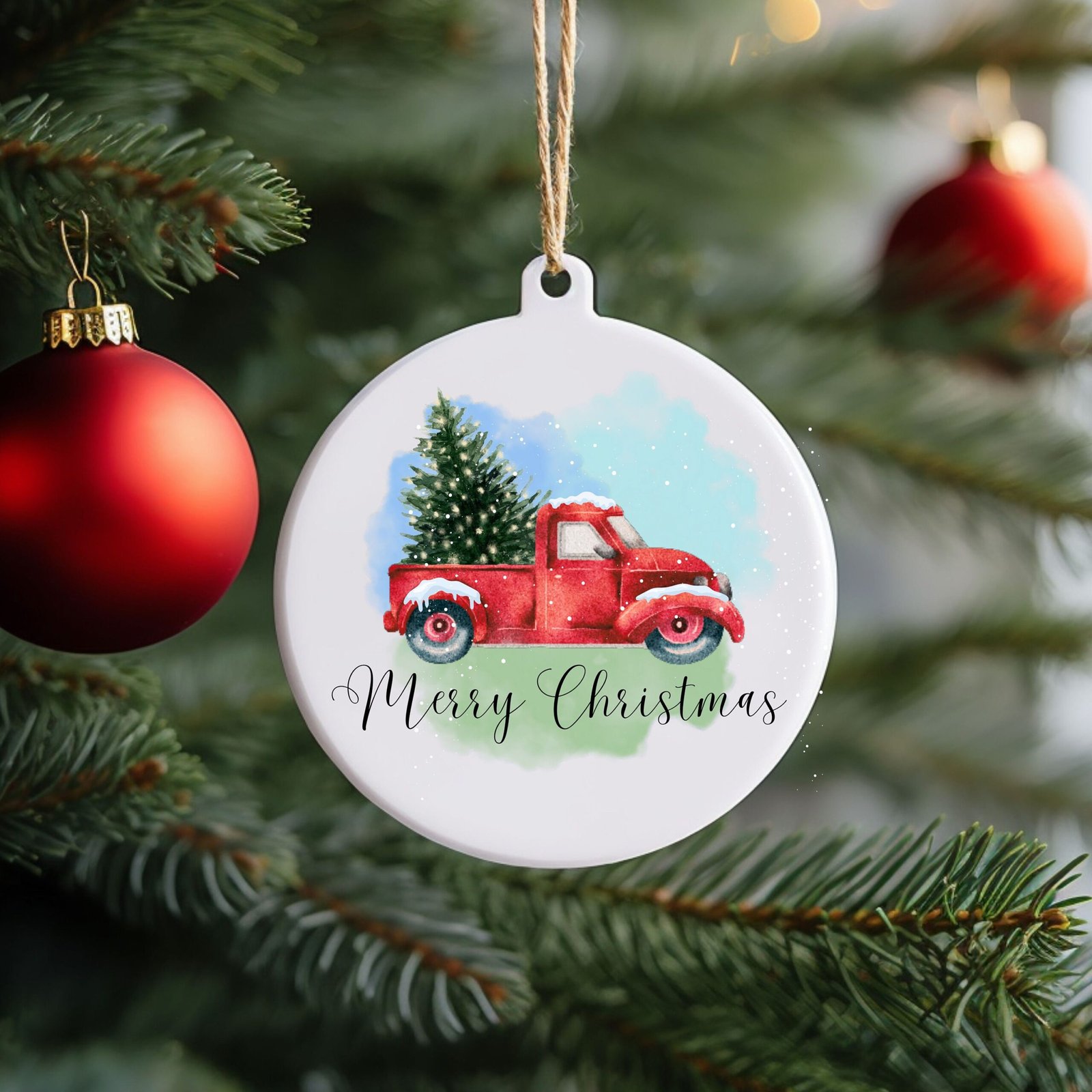 Round Christmas Ornament, Christmas Truck PNG Instant Download, Sublimation Designs Downloads, Wrap Transfers Design-High-Resolution.