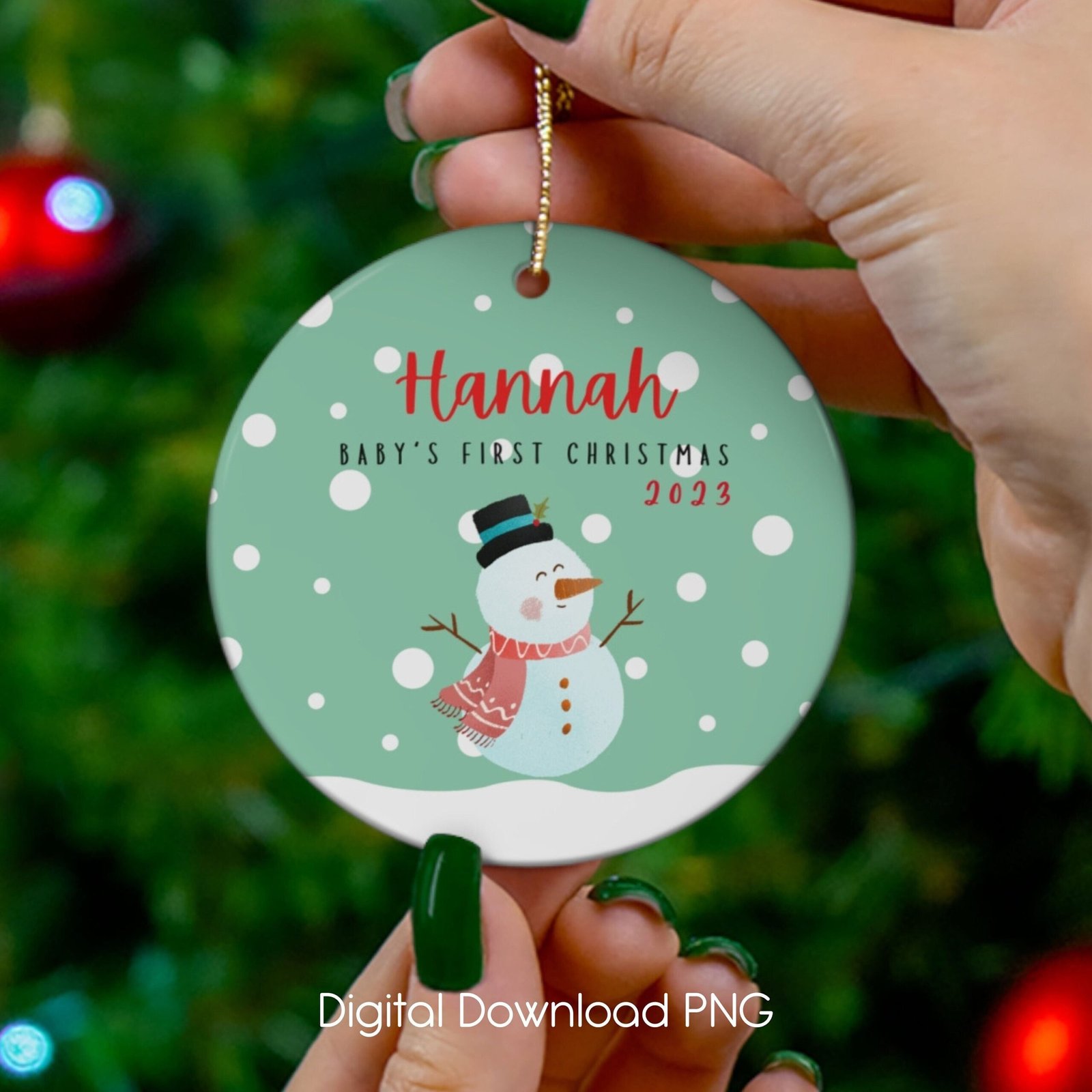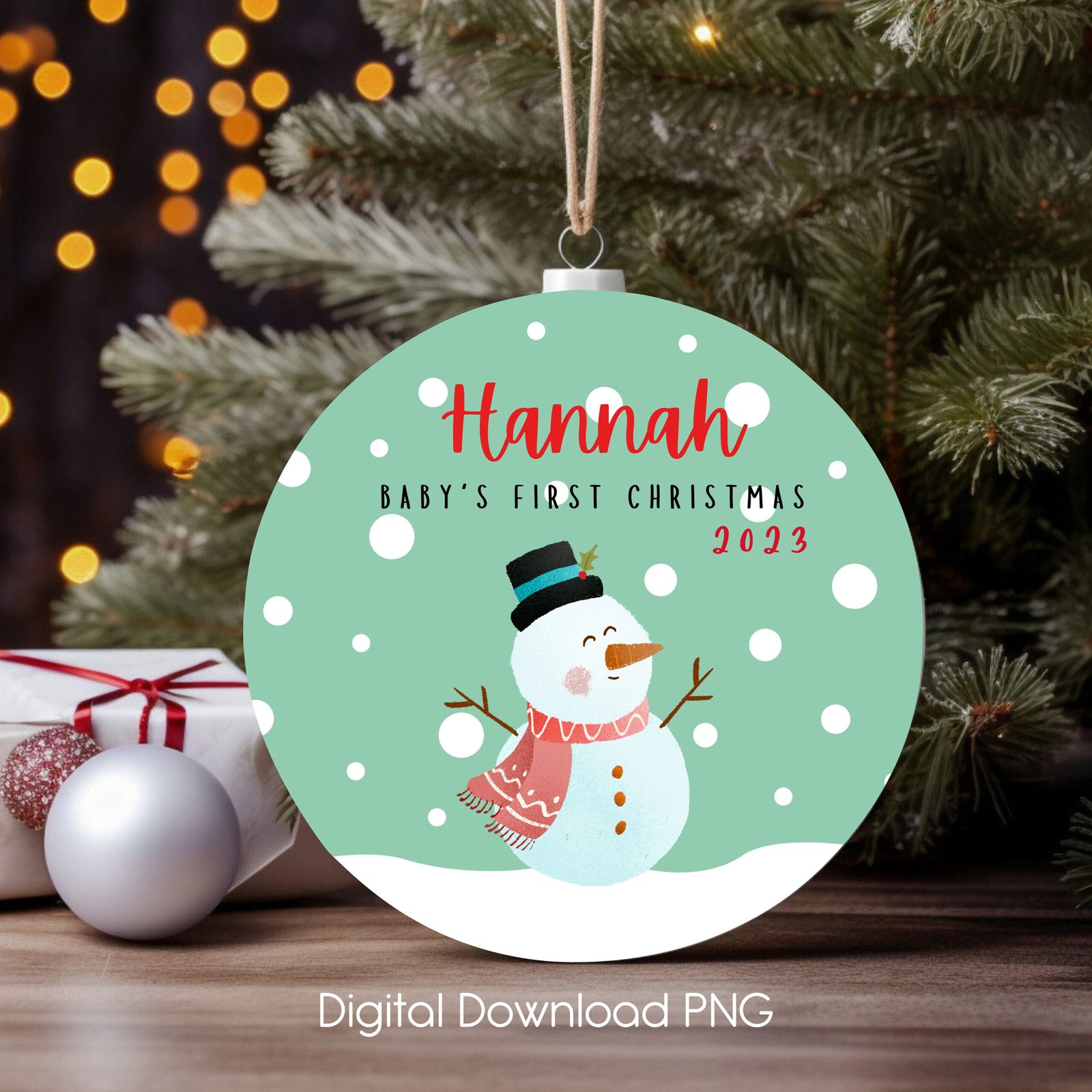 Round First Christmas Ornament, Cute Snowman PNG Instant Download, Christmas Sublimation Ornament, Wrap Transfers Design-High-Resolution.