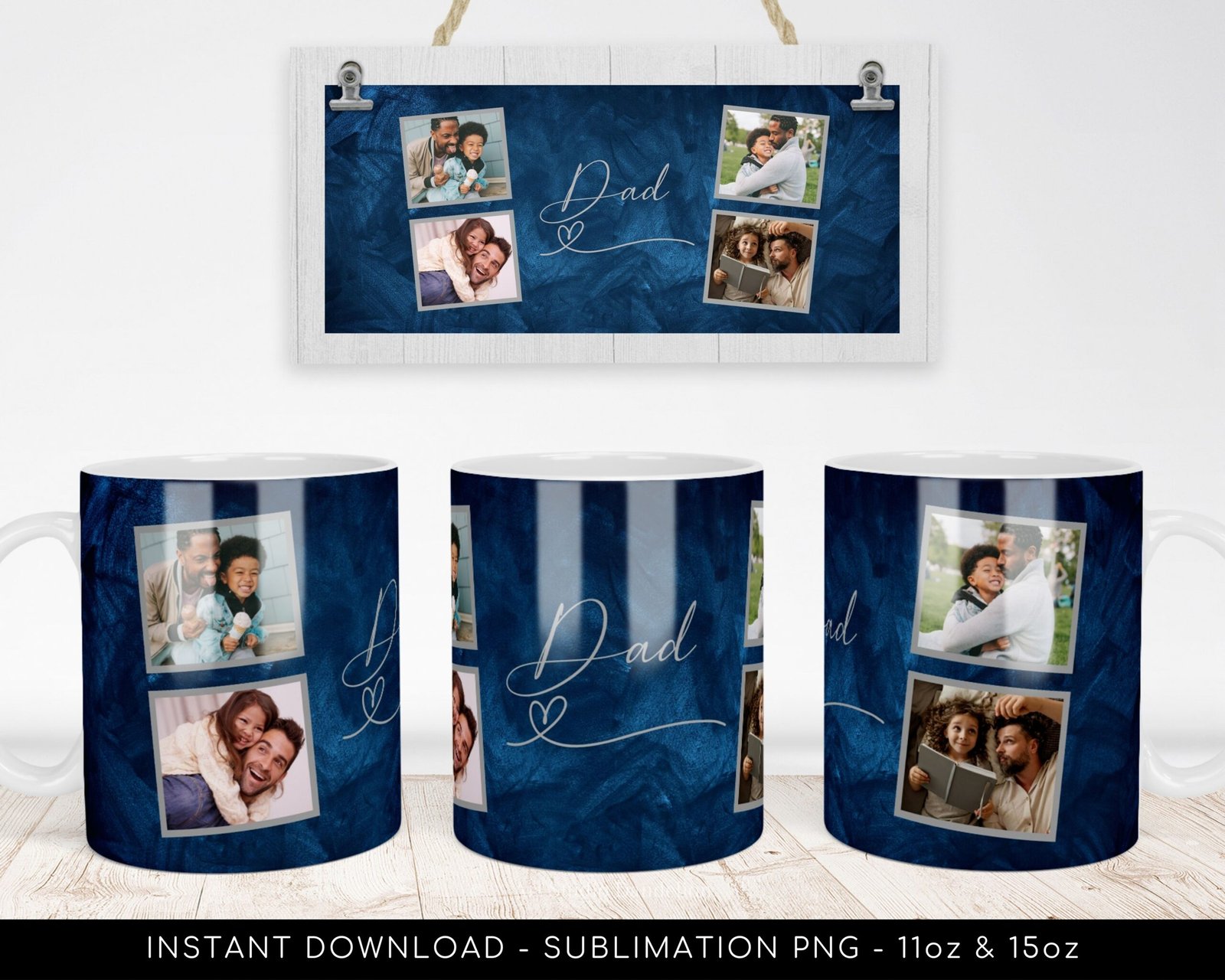 DAD PHOTO Mug Sublimation PNG Template, Dad Photo Grid Mug, Dad Quote Mug, Father’s Day, Custom Photo Mug, 4-Photos – Instant Download