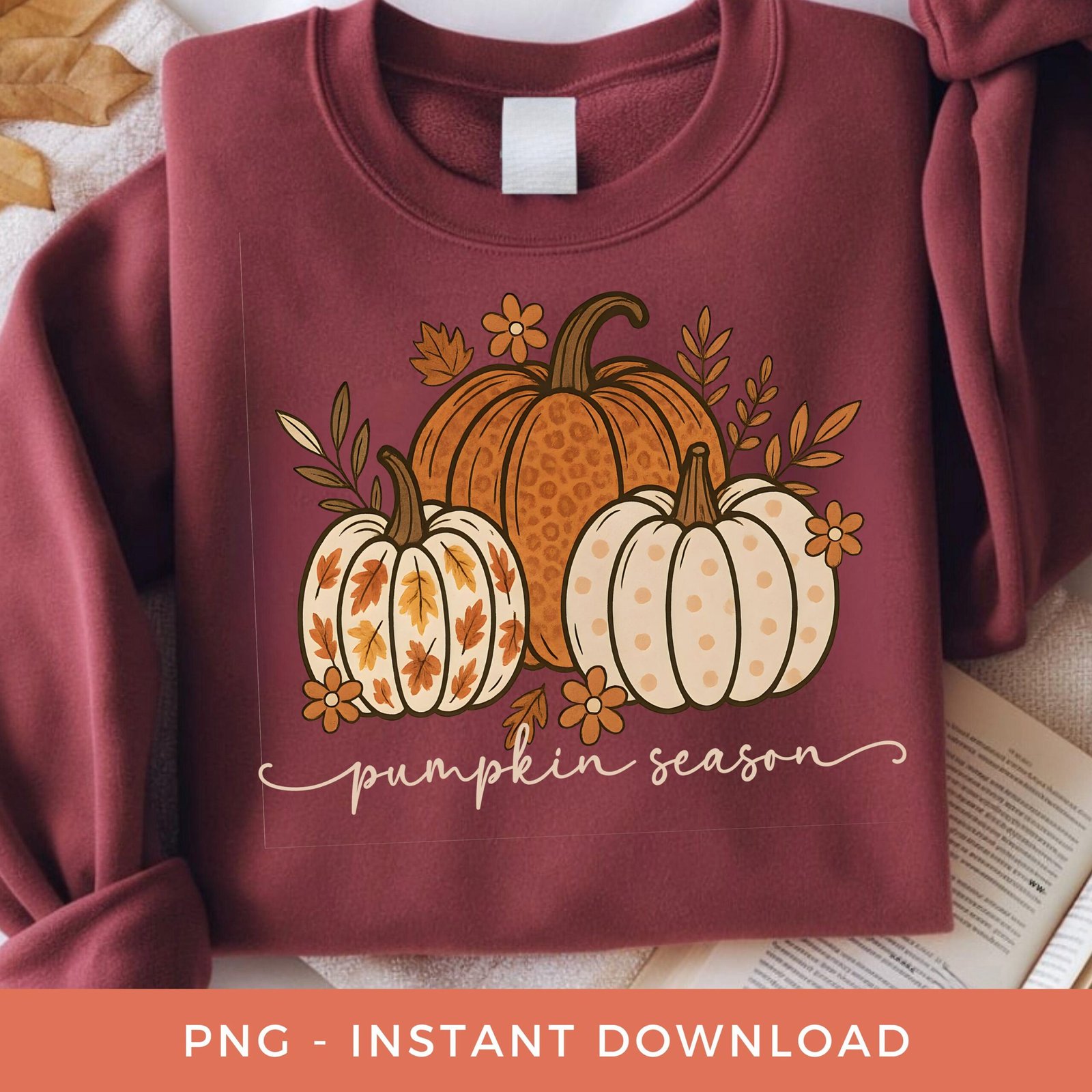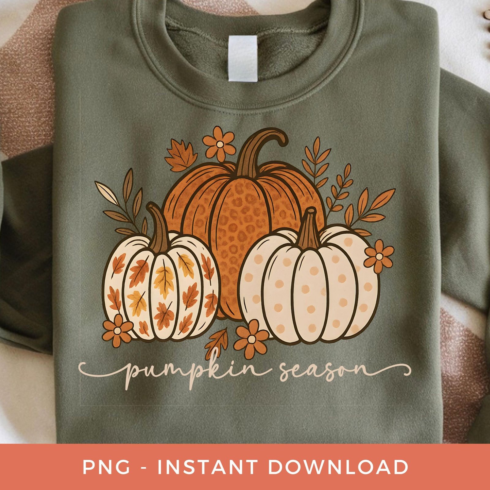 Floral Pumpkin PNG, Pumpkin Season Sublimation, Retro Fall DTF, Thanksgiving Clipart, Autumn Boho Matching Pumpkins PNG, Digital Download.