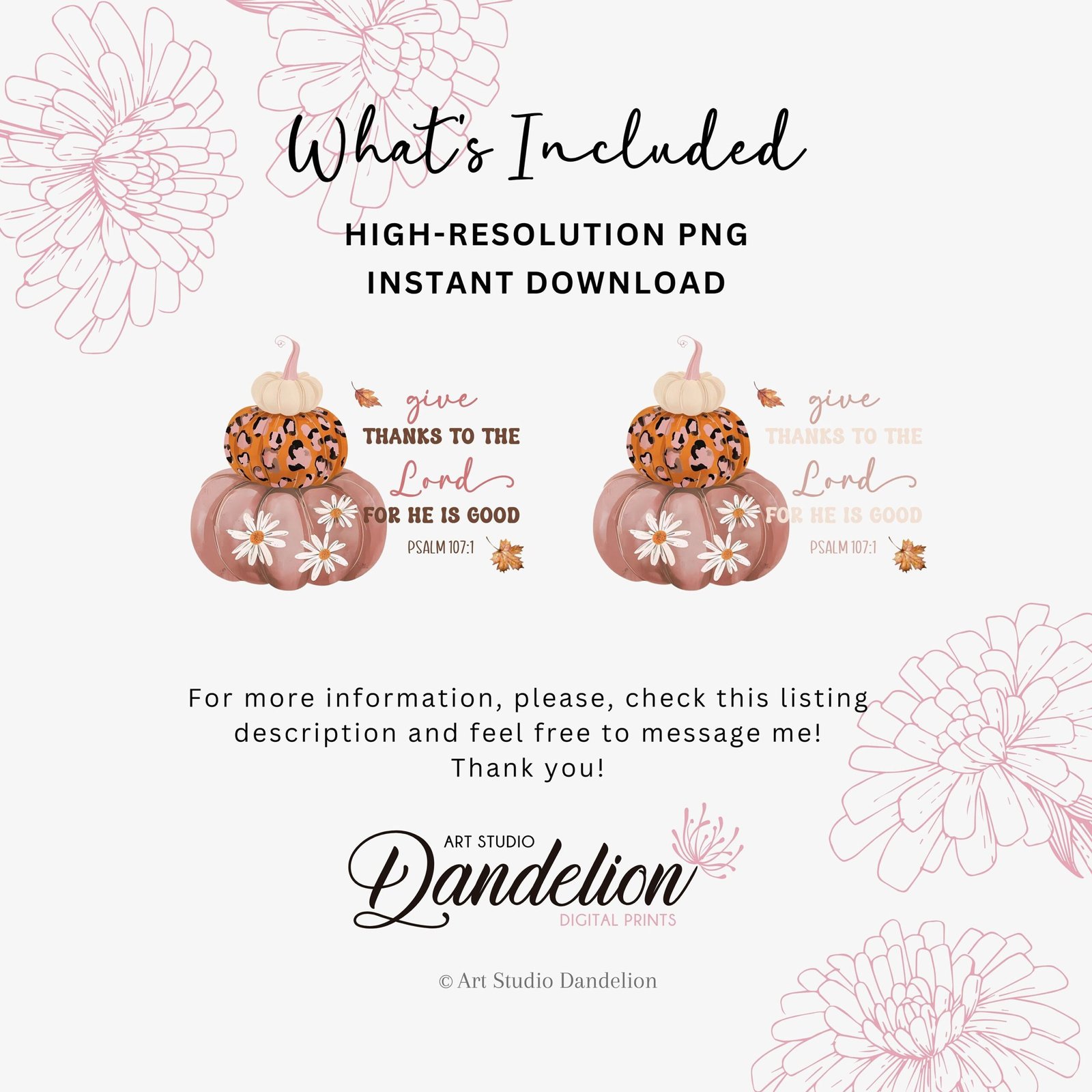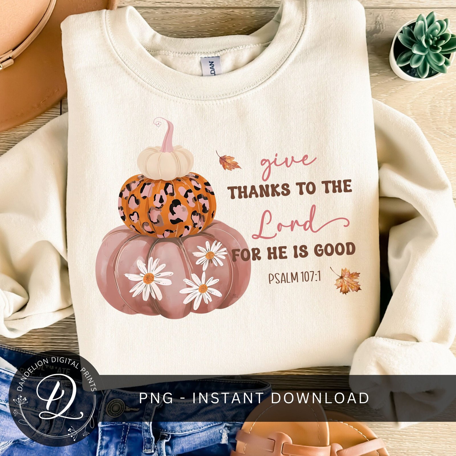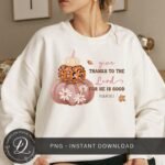 Give Thanks To The Lord PNG, Floral Pumpkin Stack PNG, Thanksgiving Sublimation, Christian Pumpkin PNG, Fall Season Png, Leopard Pumpkin Png