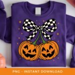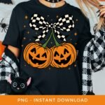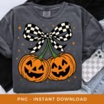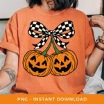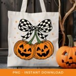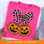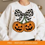 Halloween PNG, Pumpkin Cherries Sublimation, Spooky Season DTF, Fall PNG, Checkered Coquette Bow Clipart, Autumn Girly Png, Digital Download