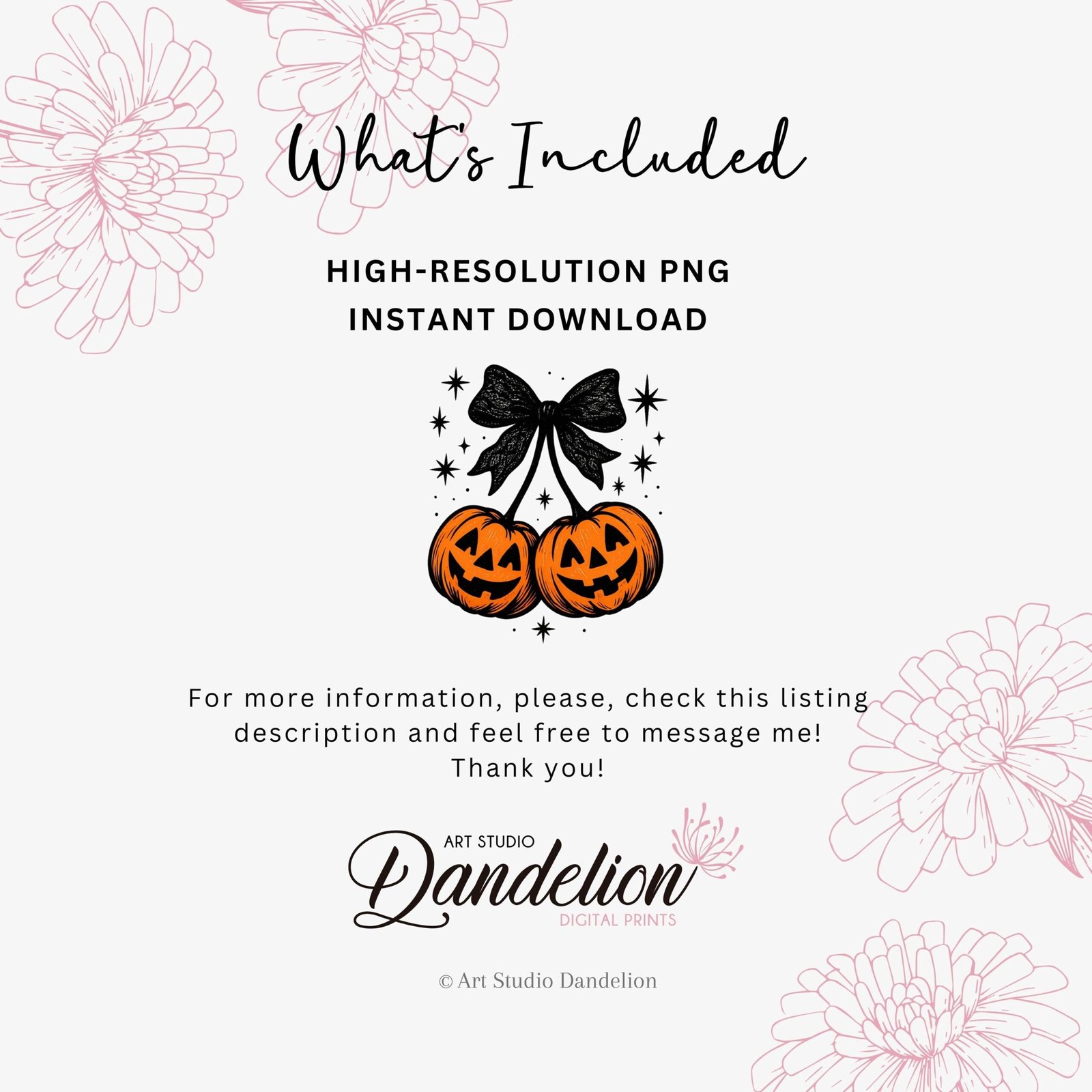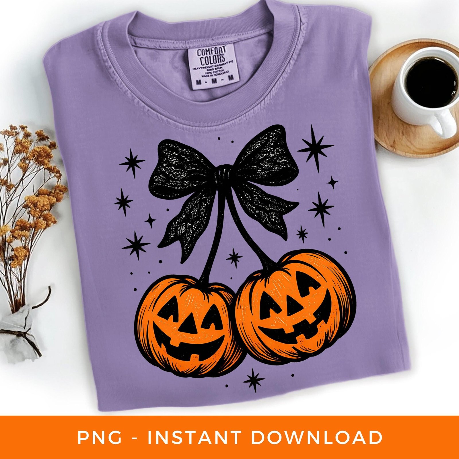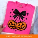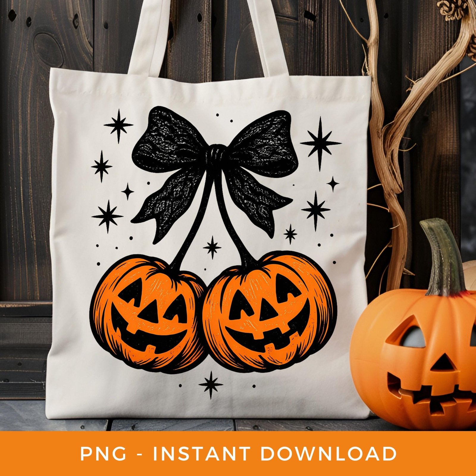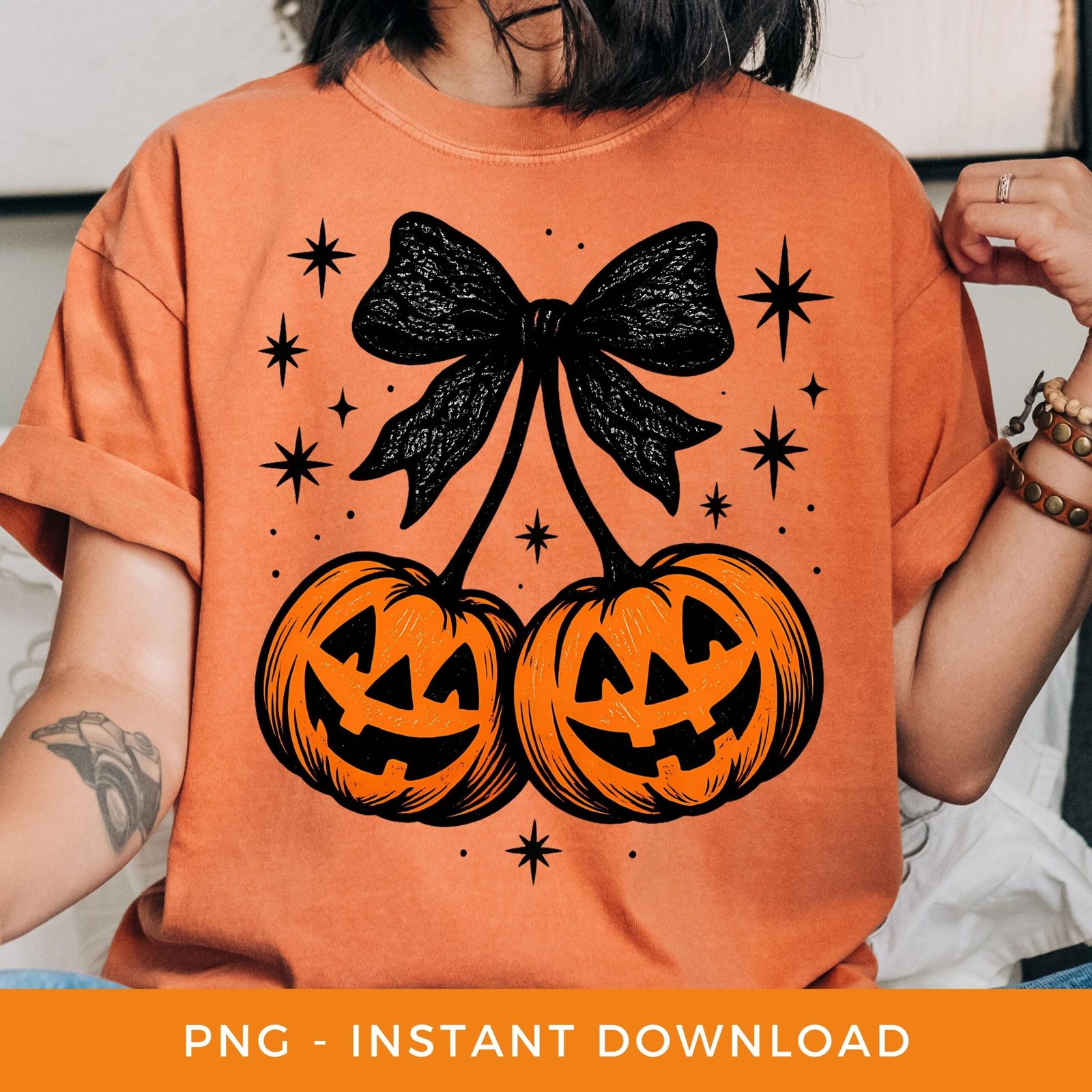 Halloween PNG, Pumpkin Cherries Sublimation, Spooky Season DTF, Fall PNG, Cherry Coquette Bow Clipart, Autumn Girly Png, Digital Download