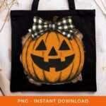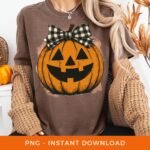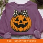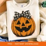 Halloween PNG, Retro Preppy Pumpkin Sublimation, Fall Season PNG, Jack O’ Lantern Clipart, Checkered Coquette Bow PNG, Digital Download.