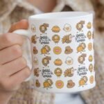 Cute Turkey Pattern Thanksgiving Gift Mug for Sublimation. High-Quality PNG.