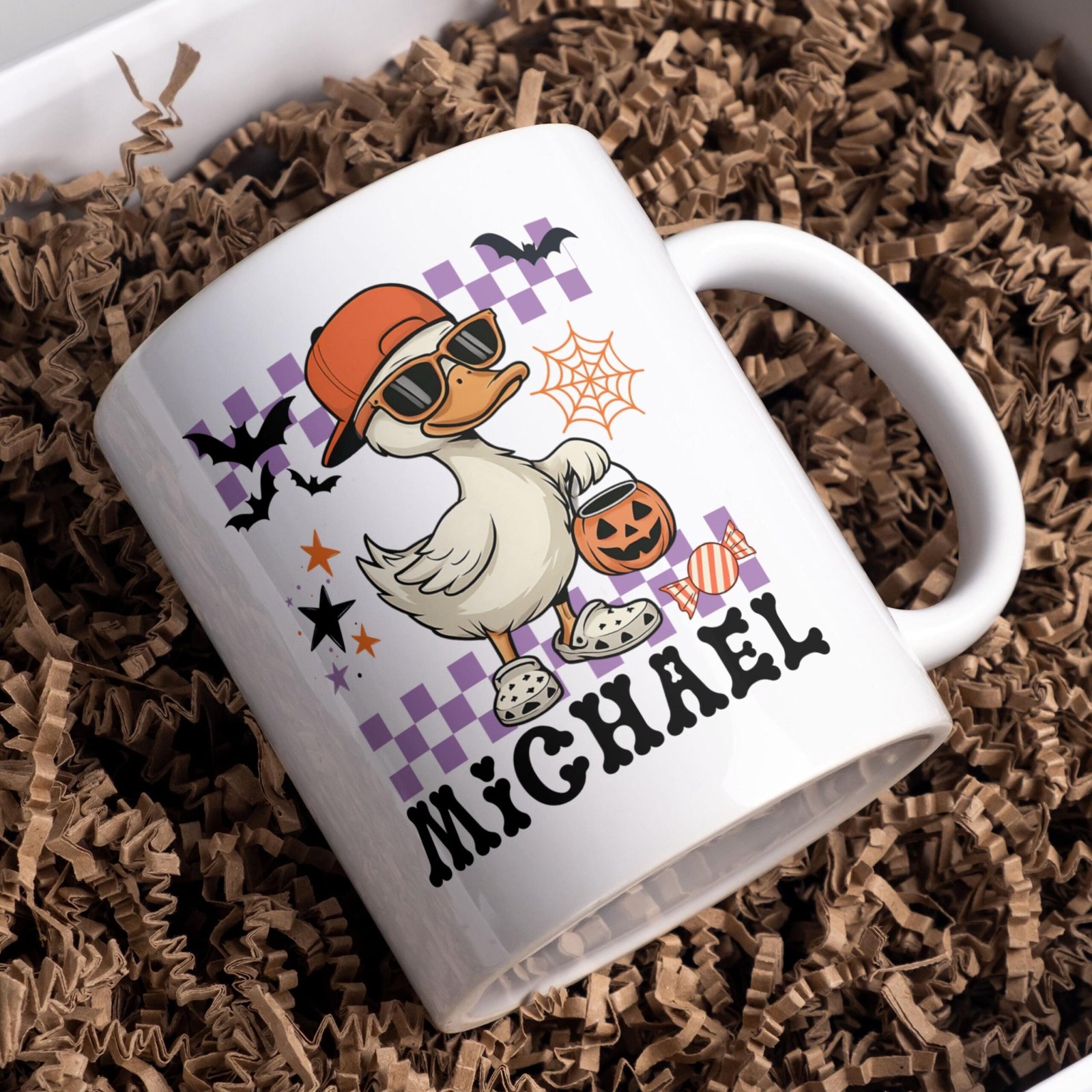 Halloween PNG Mug, Add Name Mug File for Sublimation, Halloween Goose Mug Wrap, Custom Kids Mug Transfers 11oz & 15oz, Digital Download.