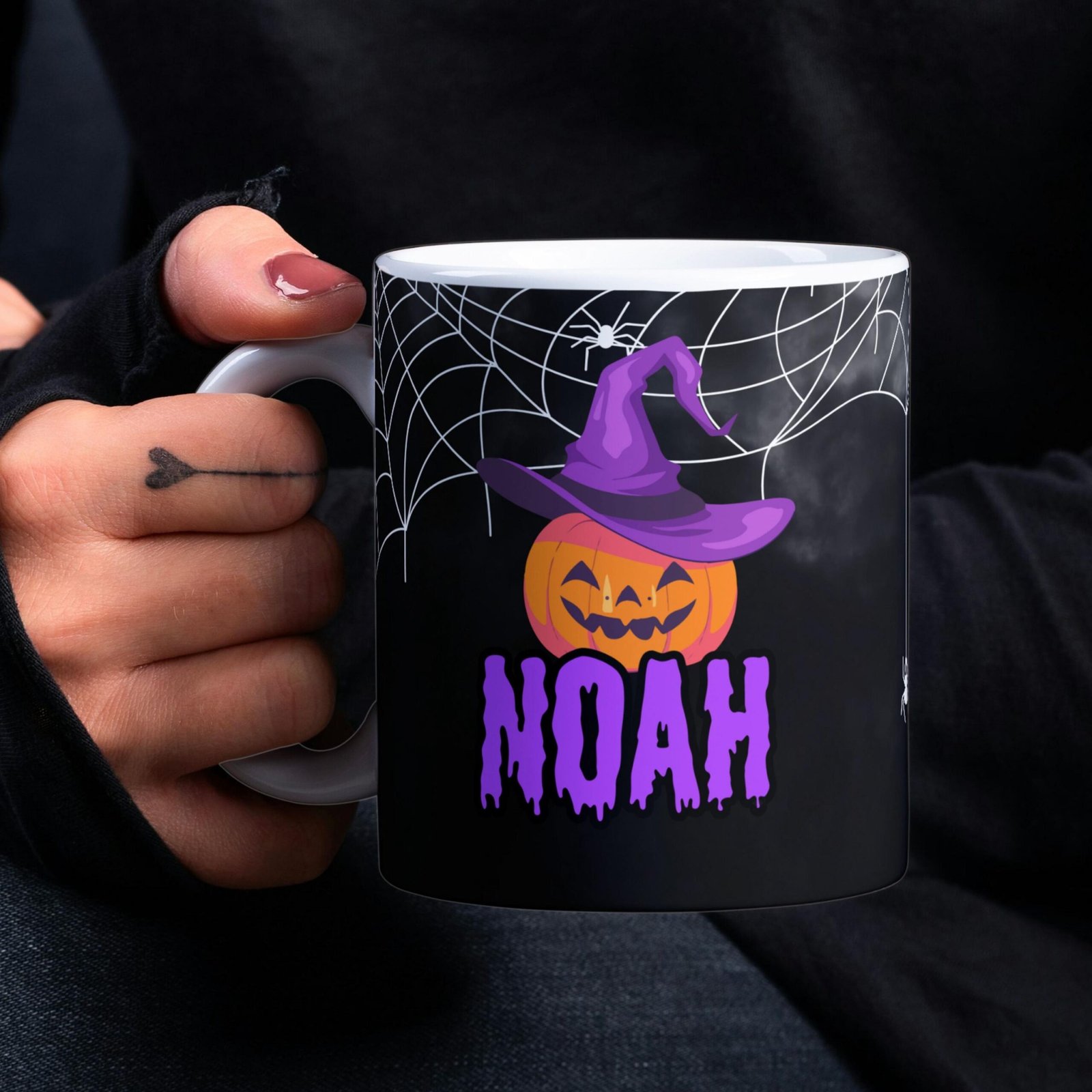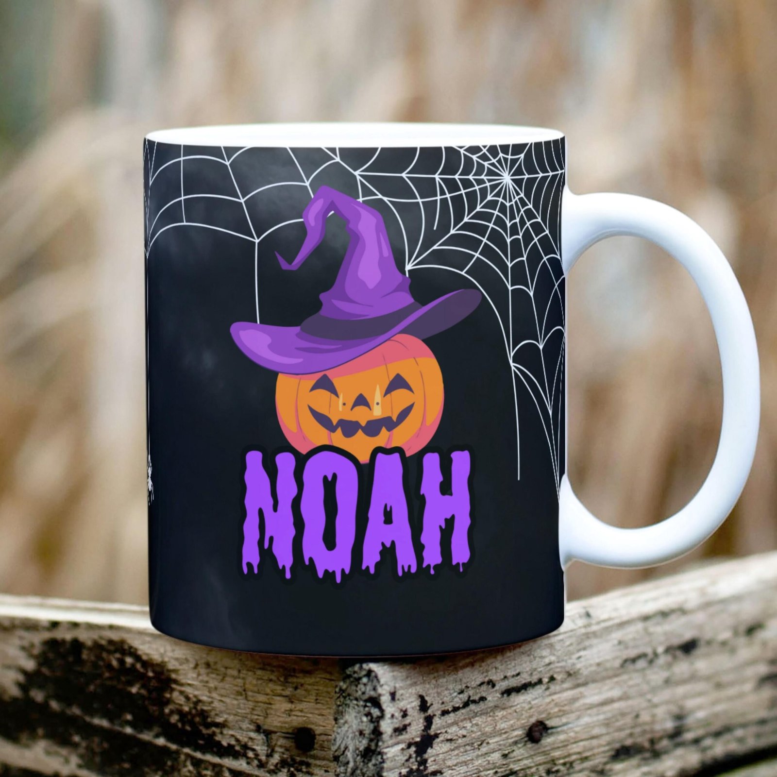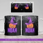 Halloween Pumpkin PNG Mug, Custom Name Mug PNG, Witch Pumpkin PNG Mug, Pumpkin Face Mug Sublimation Template, Mug Wrap Transfers 11oz & 15oz