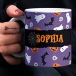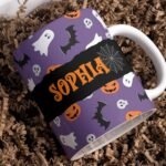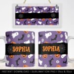 Halloween Sublimation Mug, Add Name Custom PNG Mug File for Sublimation, Mug Halloween Pattern, Mug PNG file, Mug Wrap Transfers 11oz & 15oz