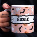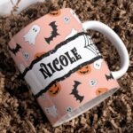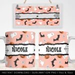 Halloween Sublimation Mug, Add Name Custom PNG Mug File for Sublimation, Mug Halloween Pattern, Mug PNG file, Mug Wrap Transfers 11oz & 15oz
