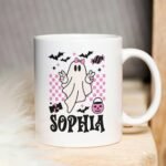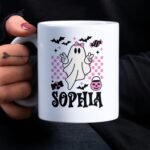 Halloween Sublimation Mug, Custom Kids Name Mug PNG, Retro Ghost PNG Mug, Treat or Tricks Mug Sublimation Template, Mug Wrap 11oz & 15oz.