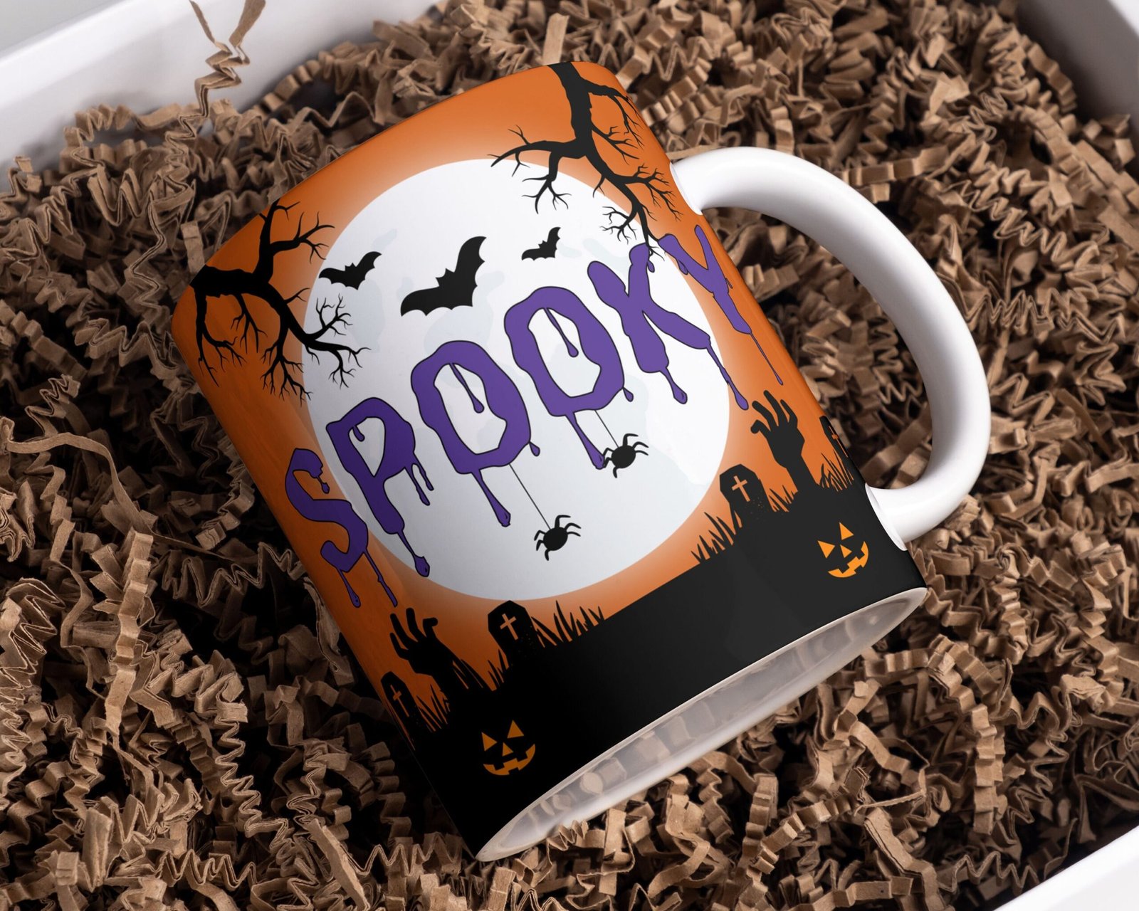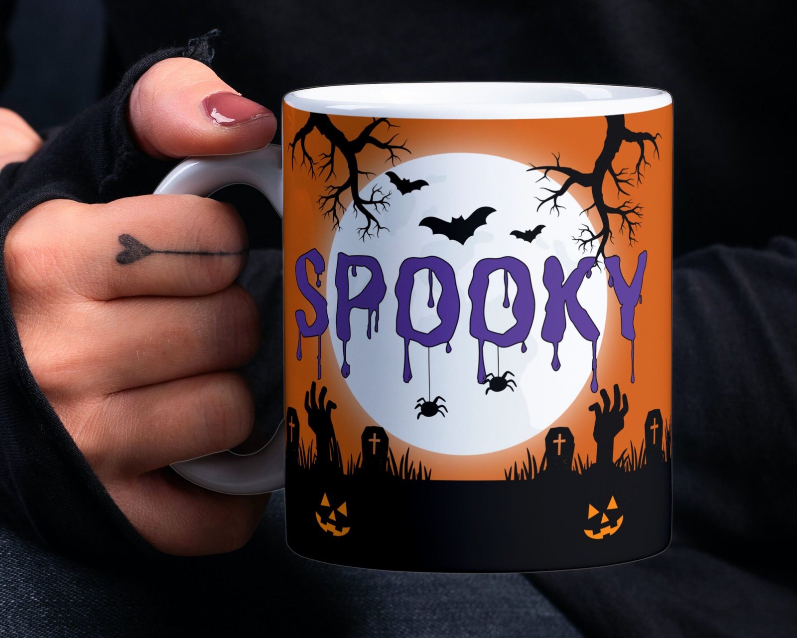 Halloween Sublimation Mug, Spooky Full Moon PNG Mug File for Sublimation, Halloween Spooky Mug PNG file, Mug Wrap Transfers 11oz & 15oz.