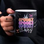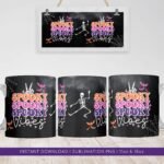 Halloween Sublimation Mug, Spooky Vibes Mug PNG, Halloween Skull Pattern Mug, Funny Mug Sublimation Template, Mug Wrap Transfers 11oz & 15oz