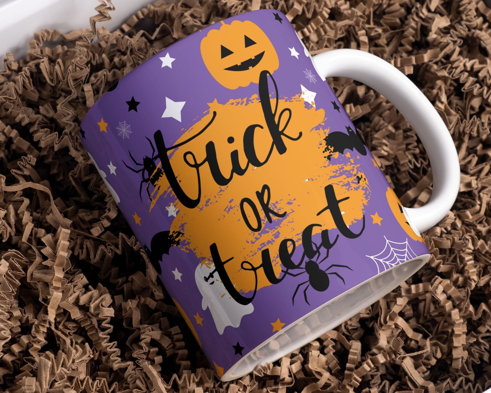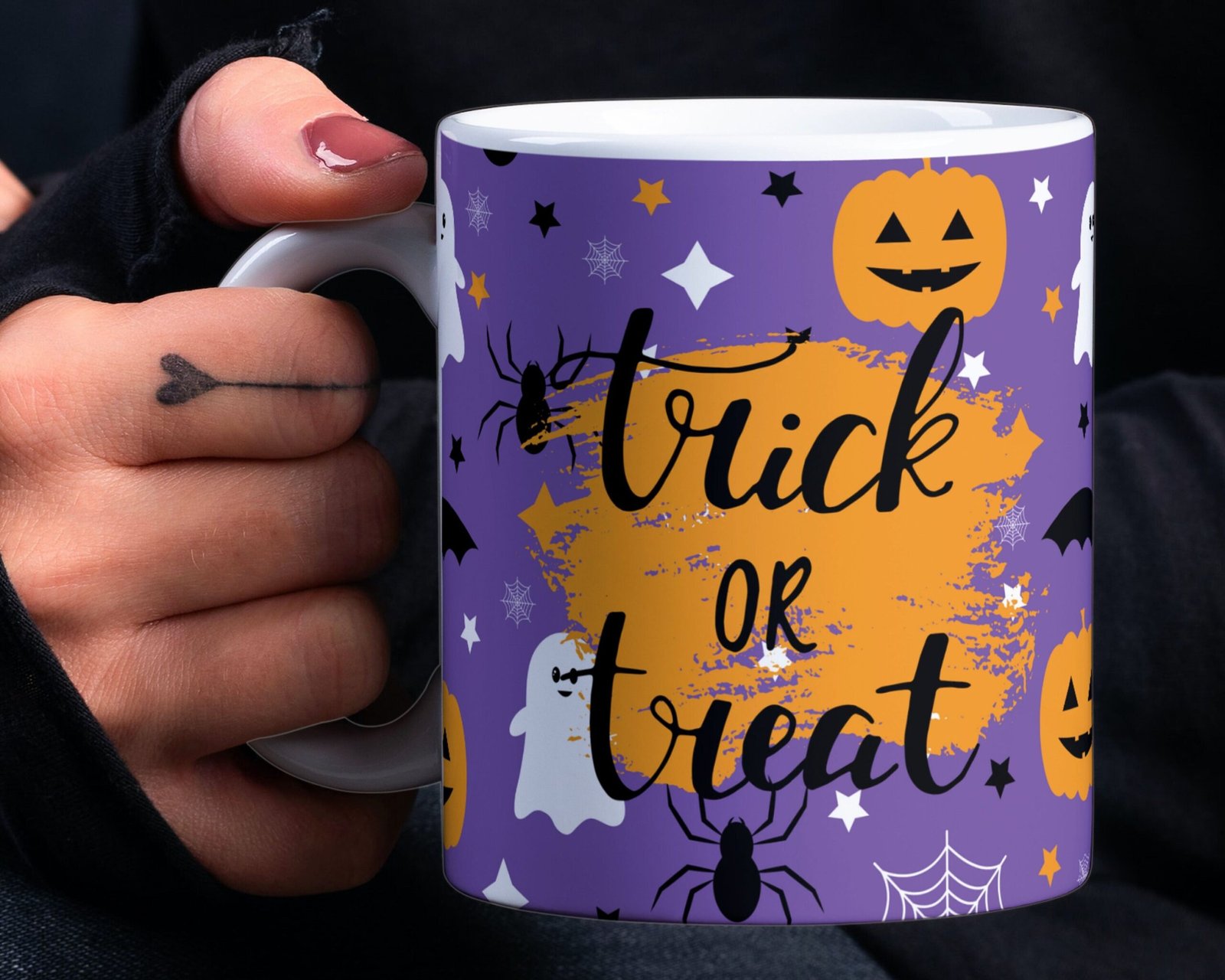 Halloween Sublimation Mug, Trick or Treat PNG Mug File for Sublimation, Mug Halloween Pattern, Mug PNG file, Mug Wrap Transfers 11oz & 15oz.