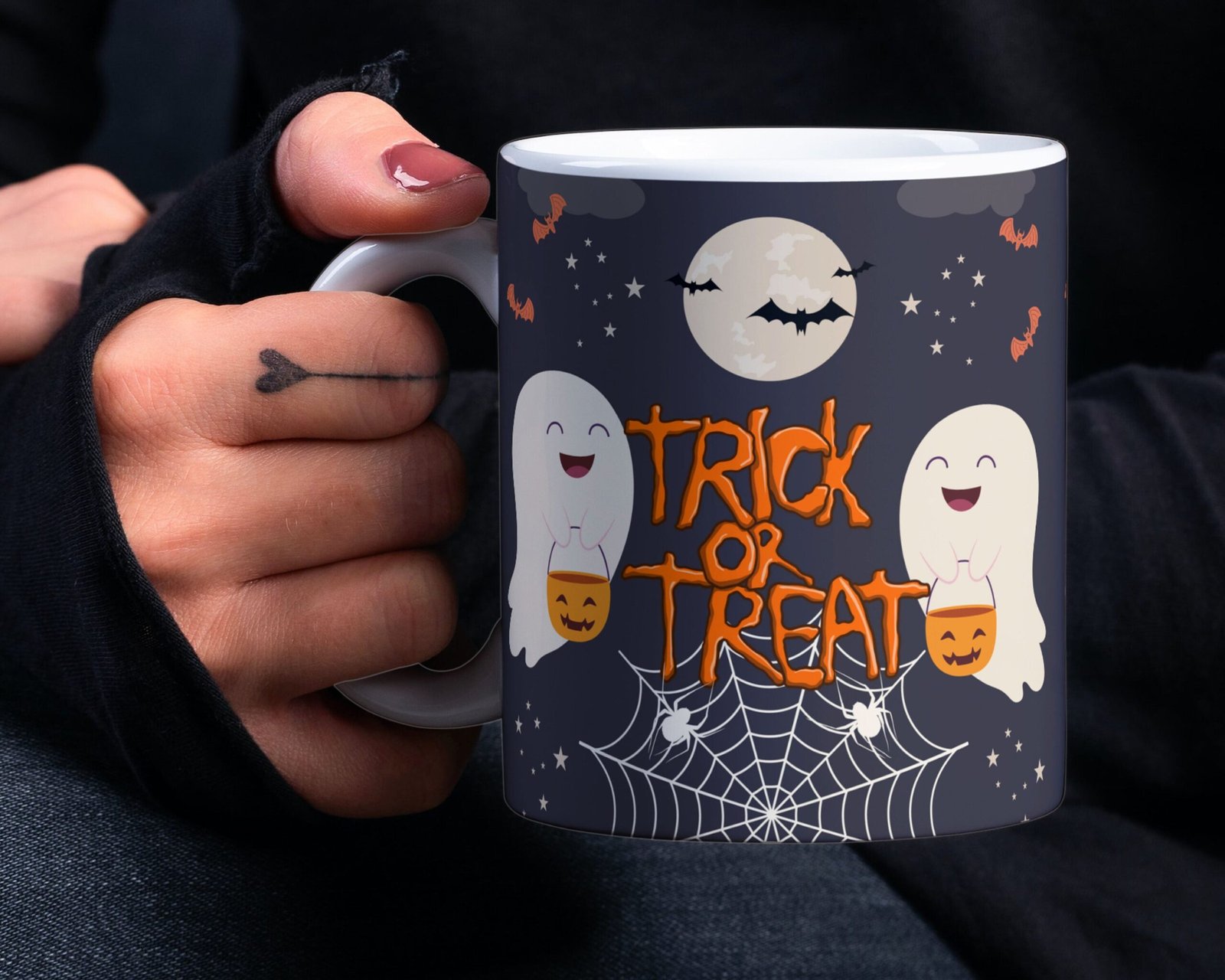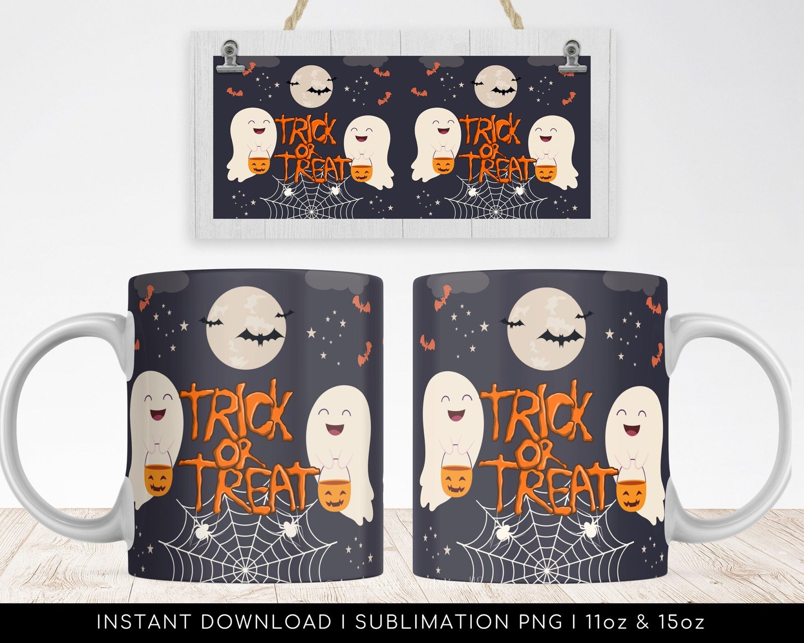 Halloween Sublimation Mug, Trick or Treat PNG Mug File for Sublimation, Mug Halloween Pattern, Mug PNG file, Mug Wrap Transfers 11oz & 15oz.