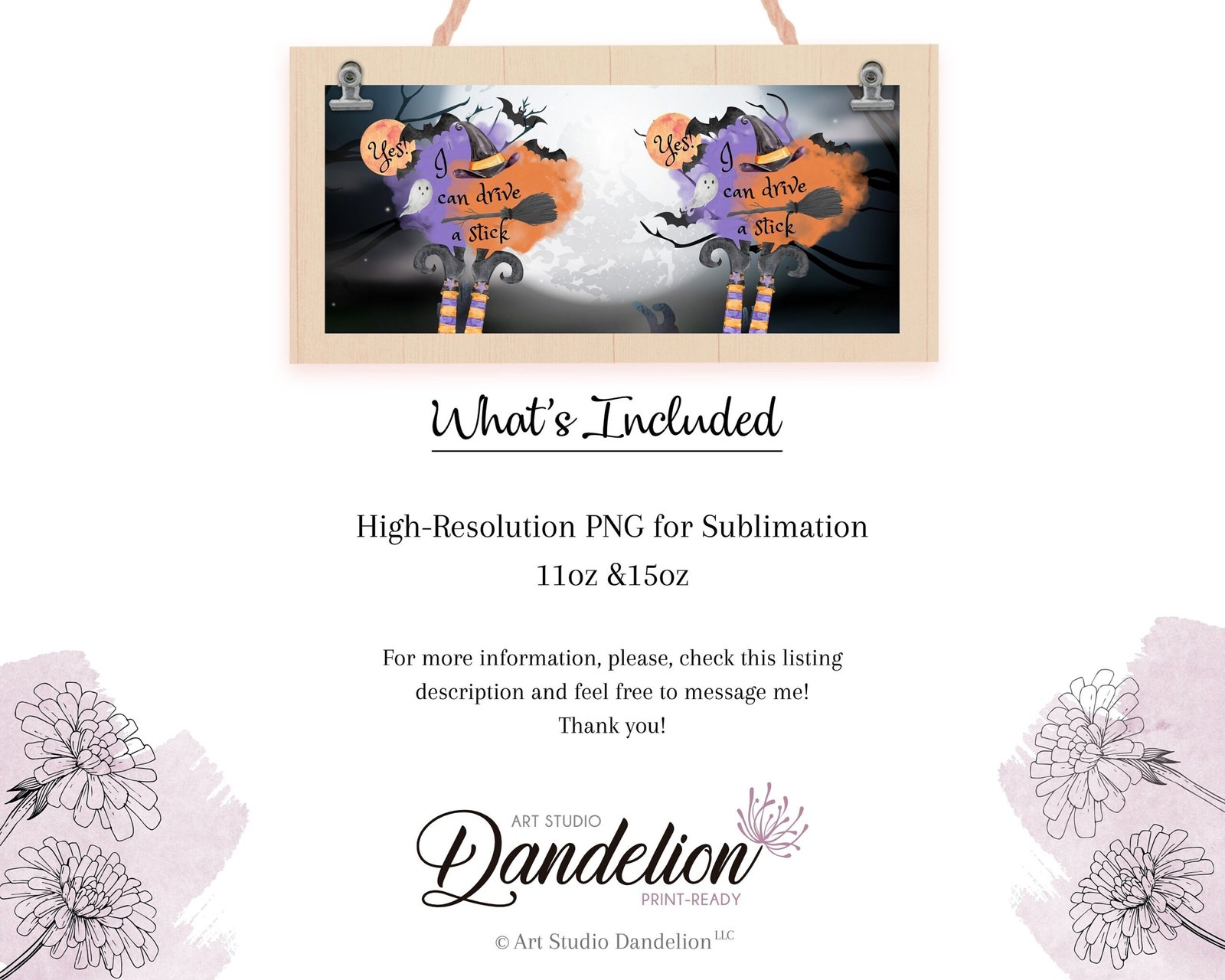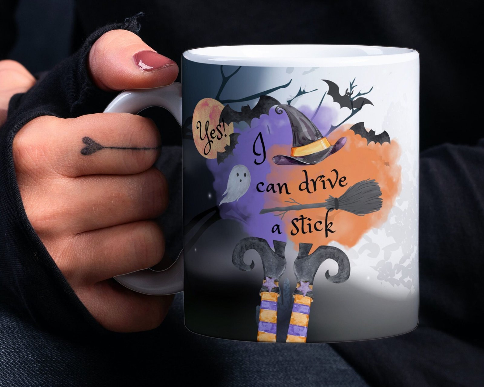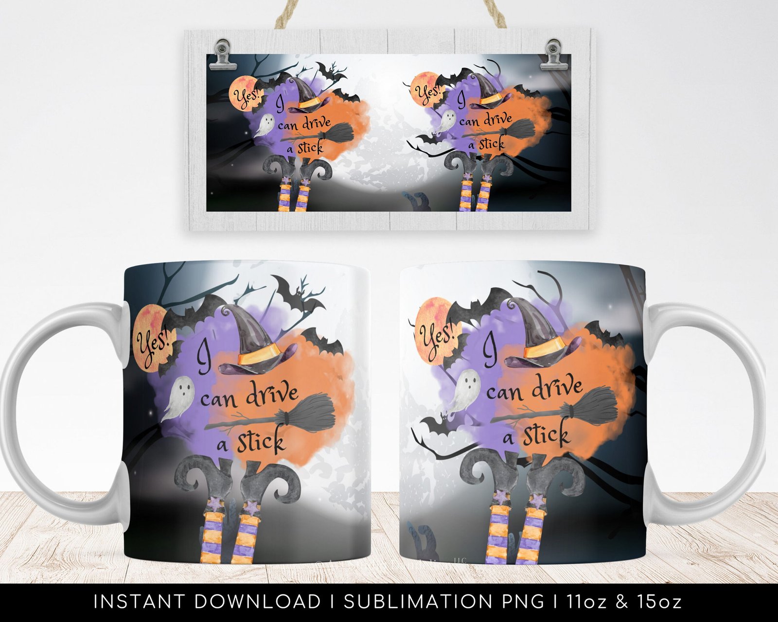 Halloween Sublimation Mug, Witch Stick PNG Mug File for Sublimation, Halloween Full moon PNG file, Mug Wrap Transfers 11oz & 15oz, Witch Mug