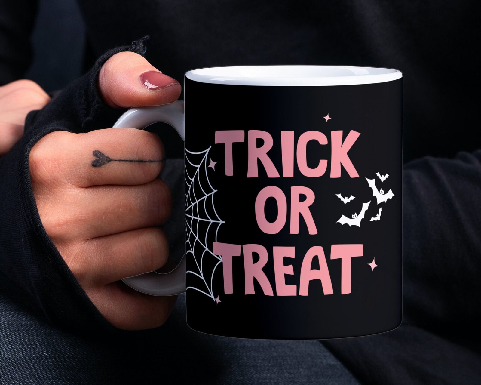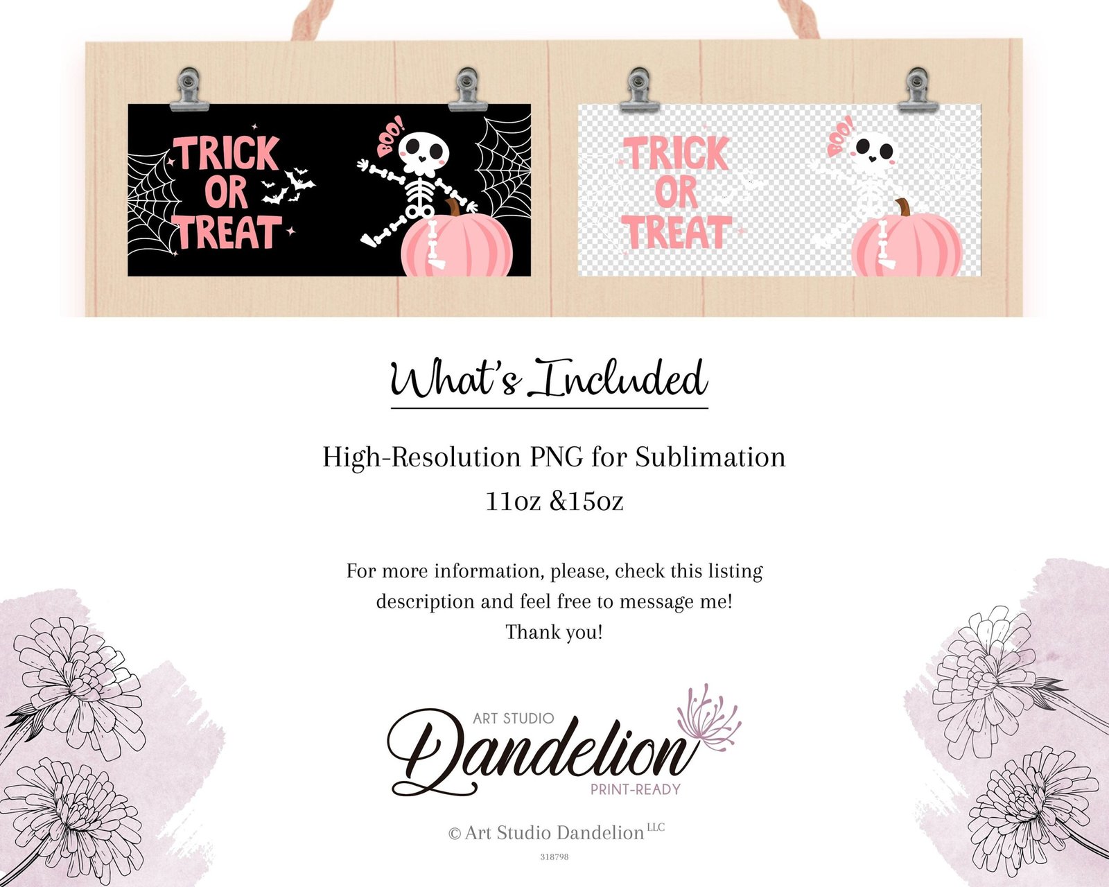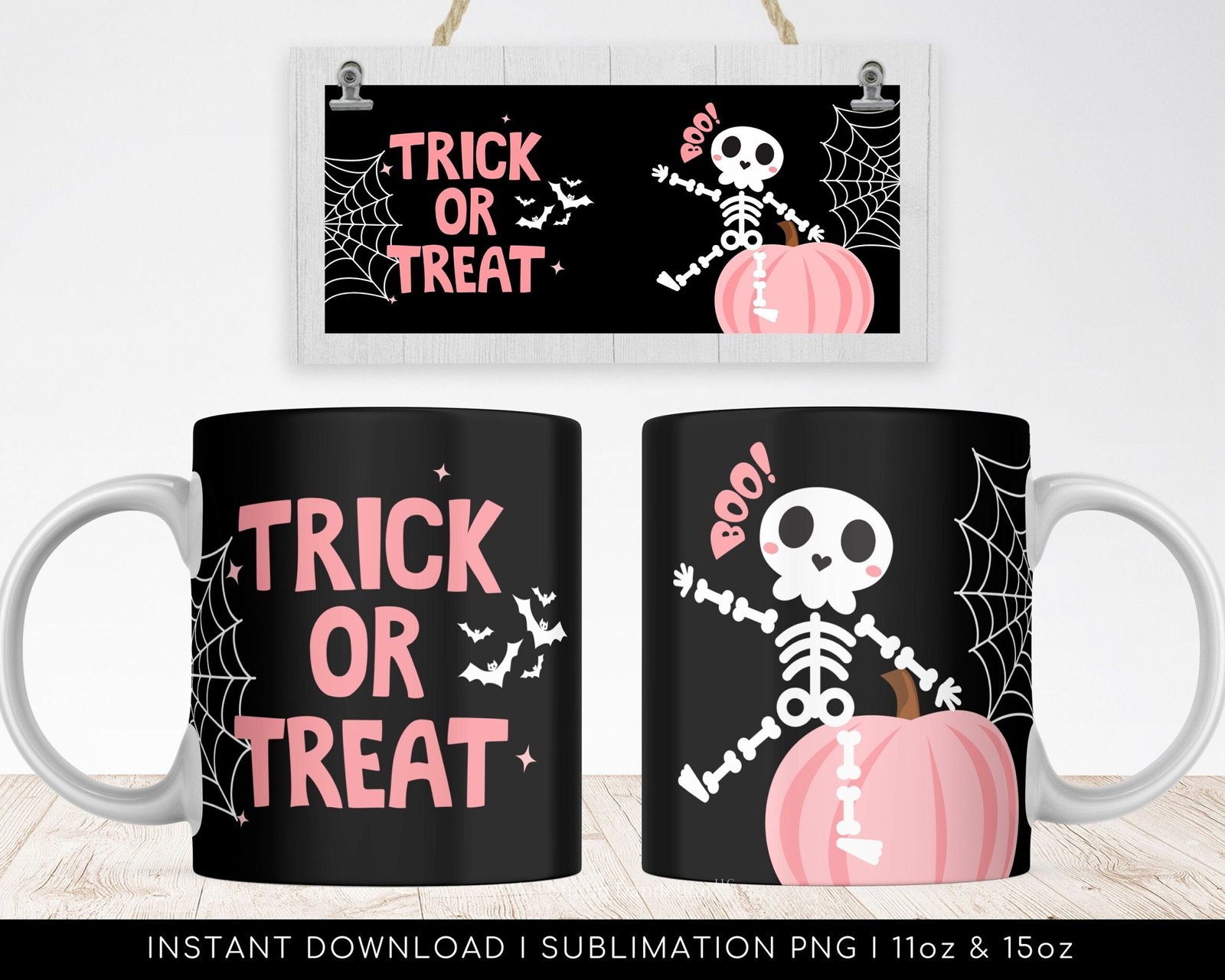 Halloween Trick or Treat Sublimation Mug, Cute Skeleton PNG Mug File for Sublimation, Pumpkin Cute Mug PNG, Mug Wrap Transfers 11oz & 15oz.