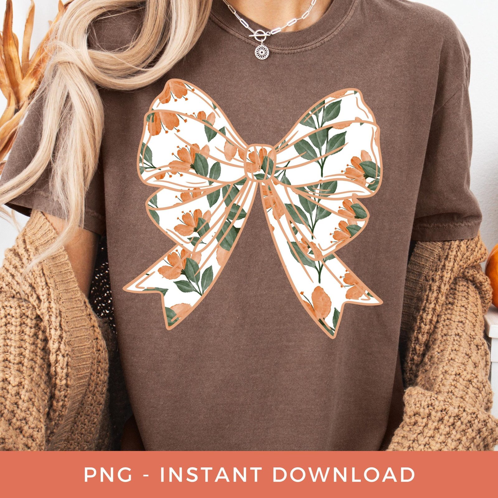 Preppy Coquette PNG, Floral Autumn Bow Sublimation, Fall Season Design, Preppy Flowers Lace Png, Thanksgiving Png, Coquette Bow Clipart.