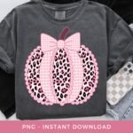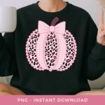 Preppy Pumpkin PNG, Pink Cheetah Pumpkin Sublimation, Retro Fall Coquette Bow DTF, Thanksgiving Clipart, Printable Autumn Lace Pumpkin.