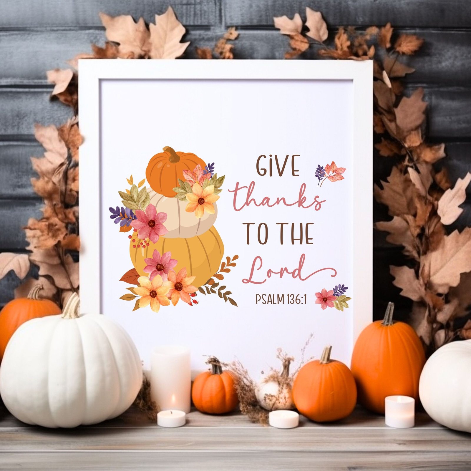 Pumpkin Stack PNG, Thanksgiving Sublimation, Christian Pumpkin PNG, Fall Season Png, Autumn Pumpkin, Give Thanks To The Lord PNG, Floral Png