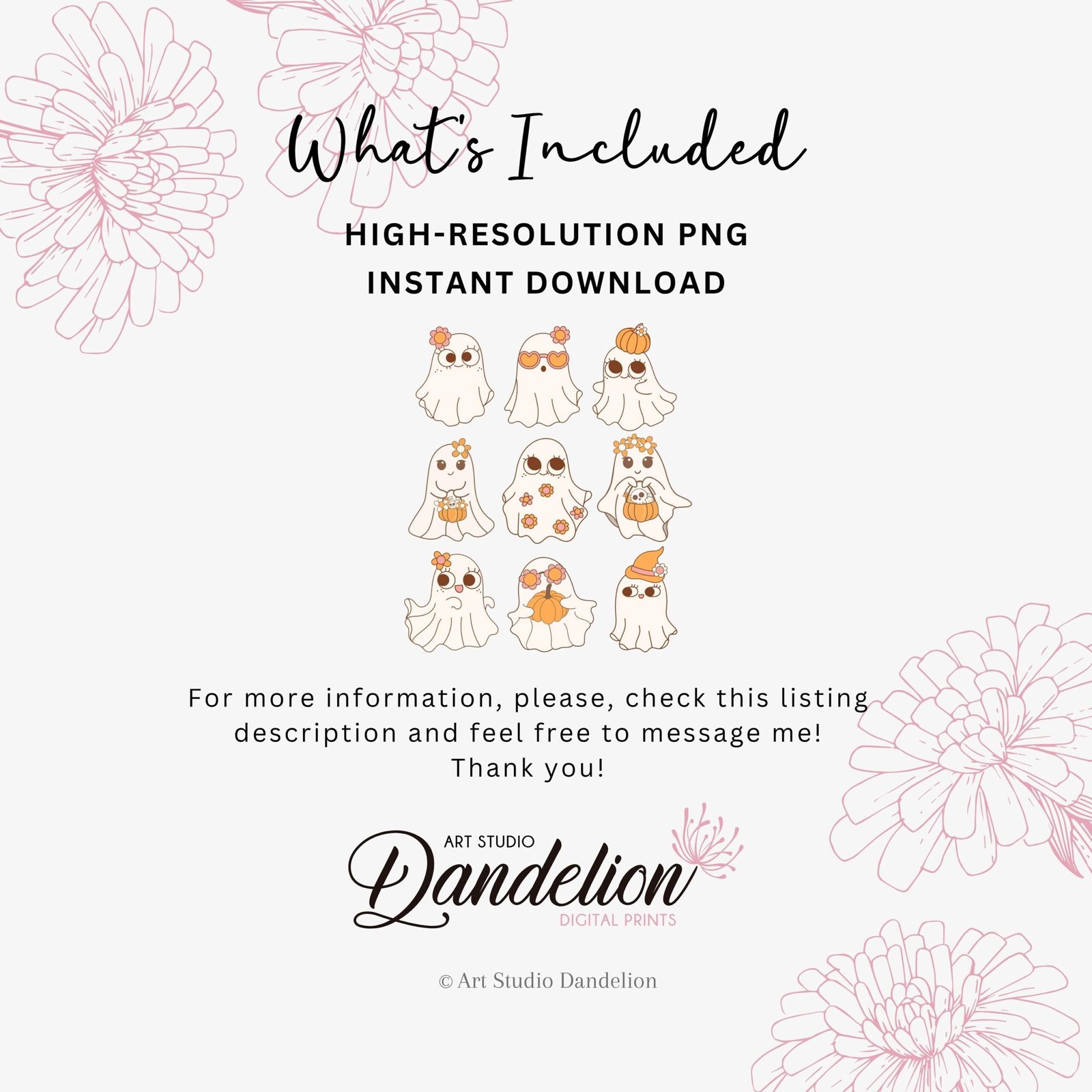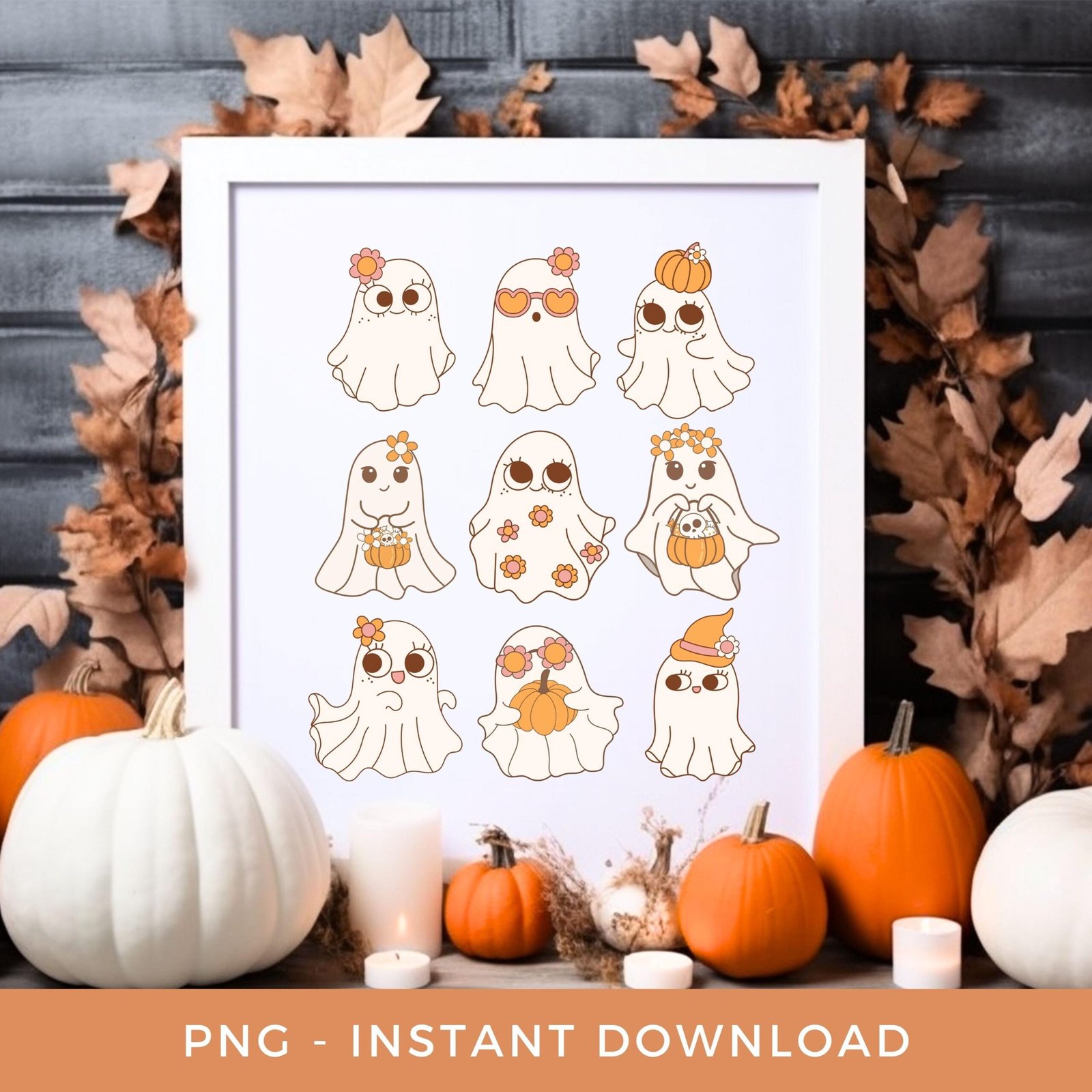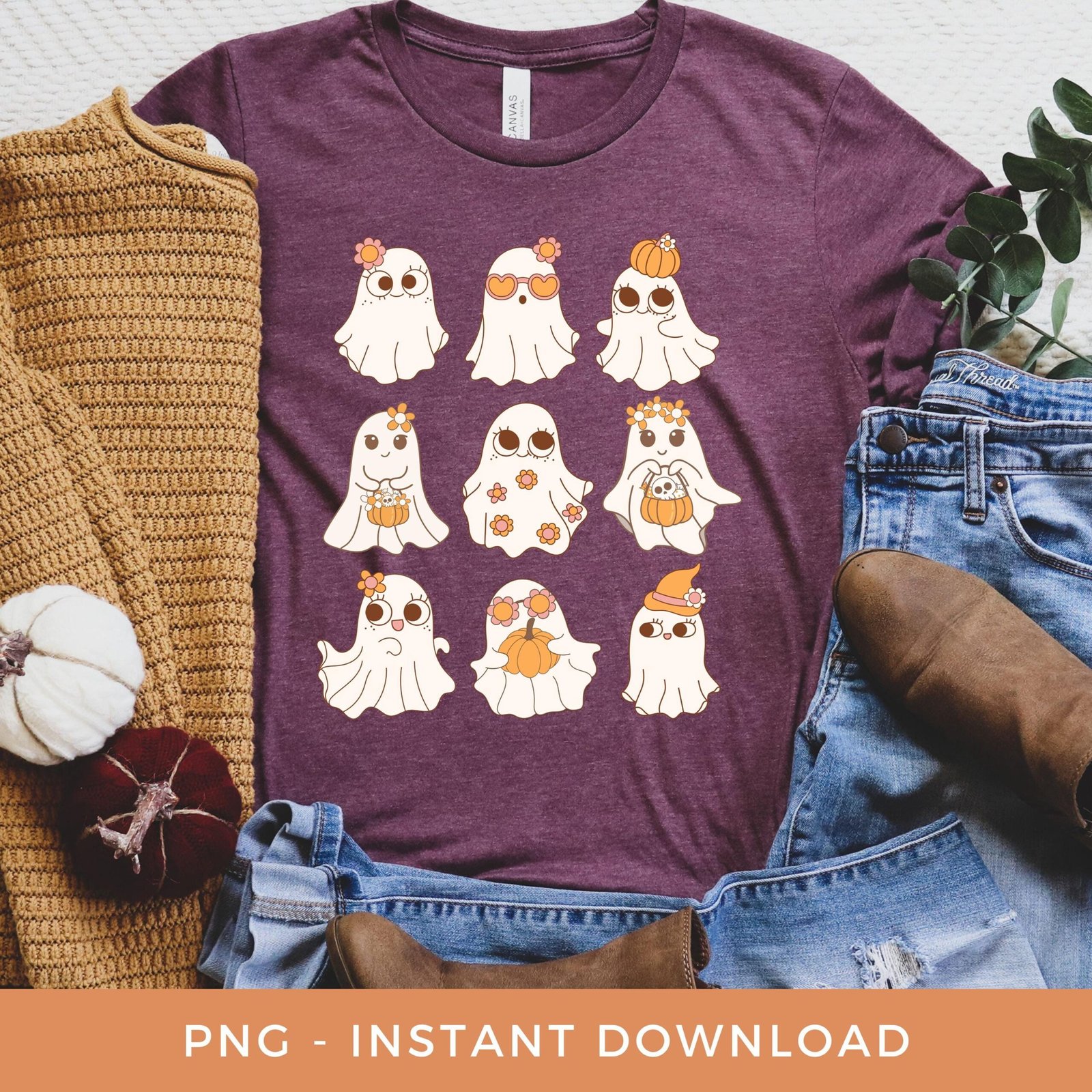 Retro Floral Ghost PNG, Cute Ghost Collage PNG, Vintage Halloween Png, Mini Ghost Png, Boujee Ghost Png, Kawai Ghost PNG. Girly Ghost Png,