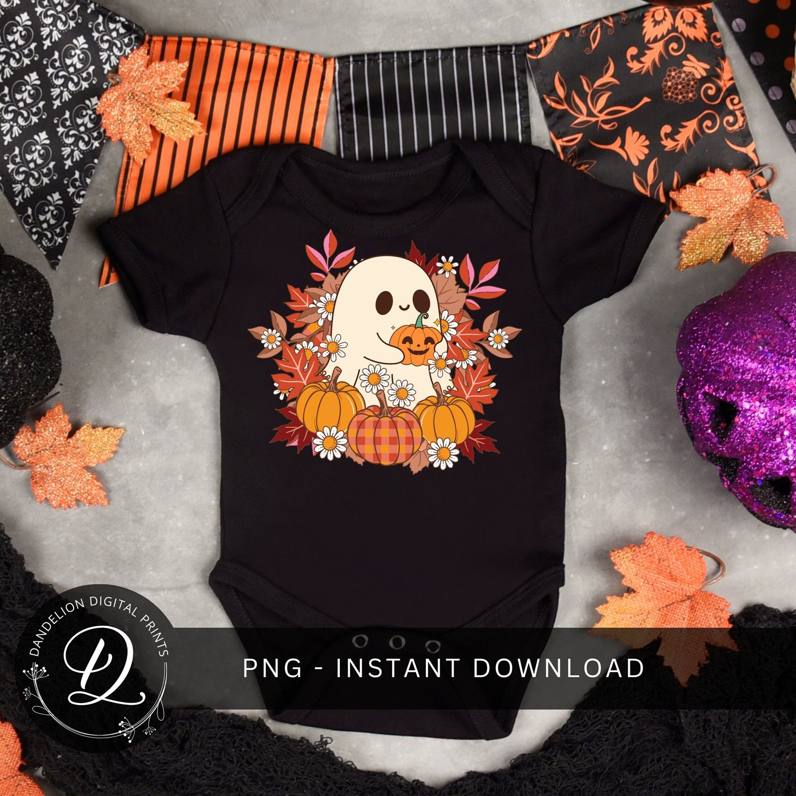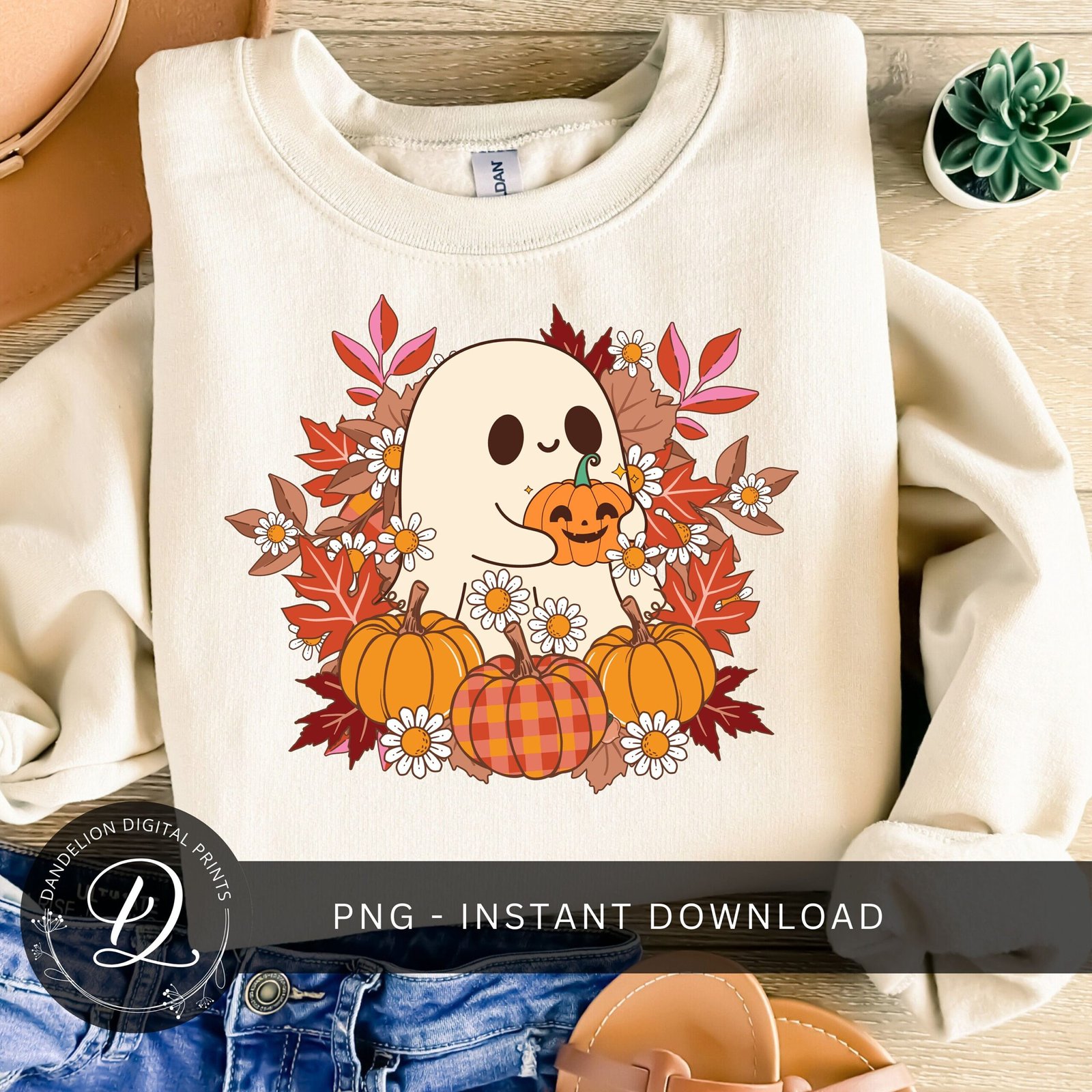 Retro Floral Ghost PNG, Cute Ghost PNG, Vintage Halloween Png, Autumn Pumpkin Png, Boujee Ghost Png, Spooky Season PNG. Fall Sublimation Png