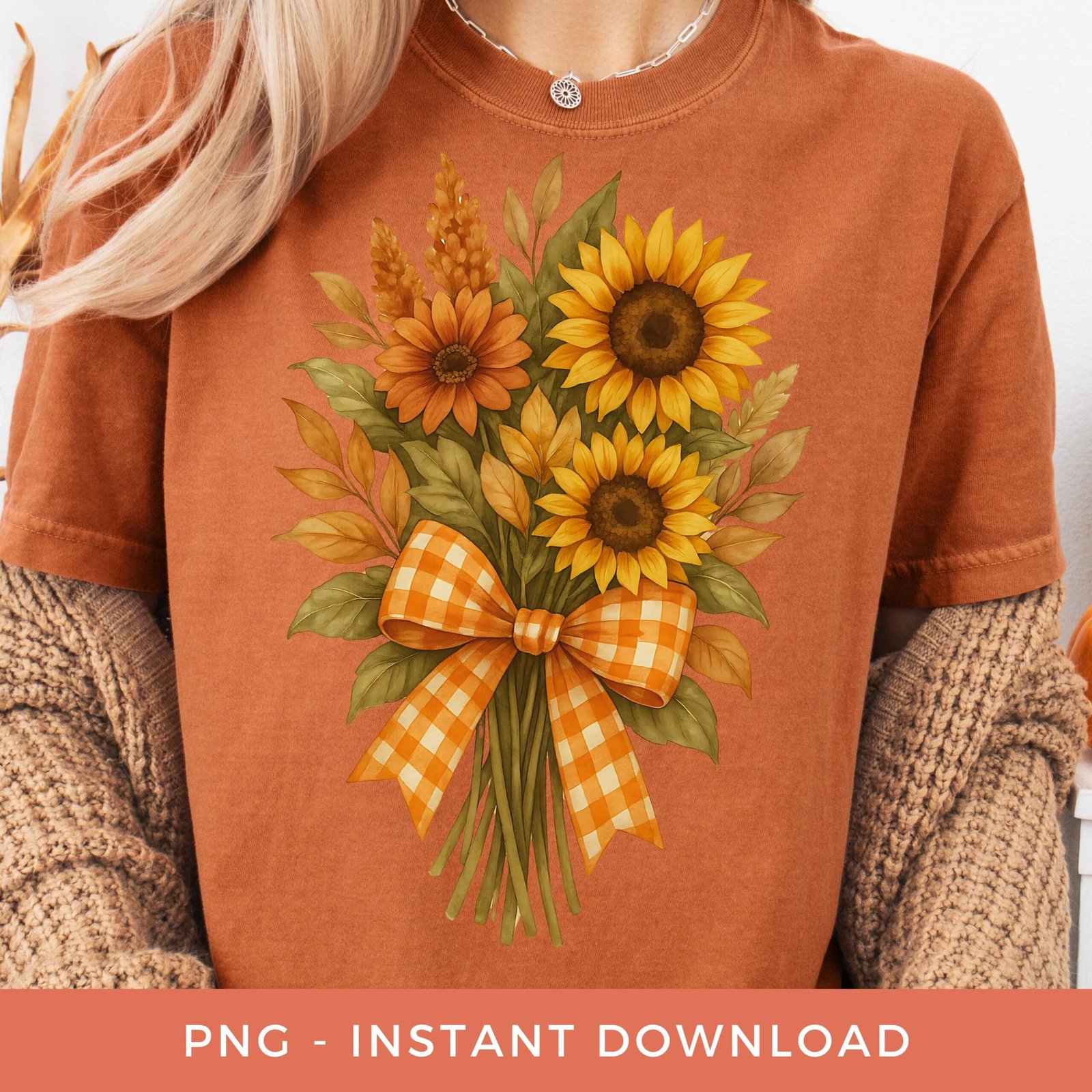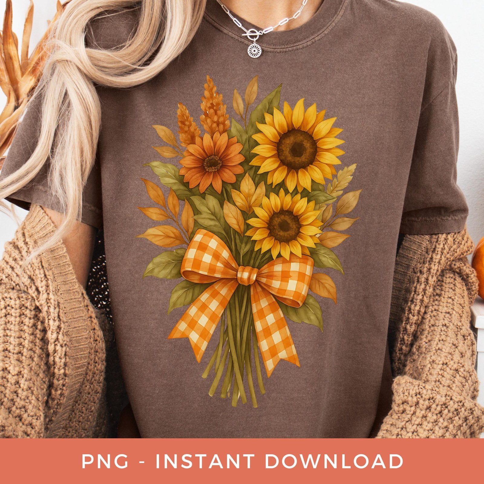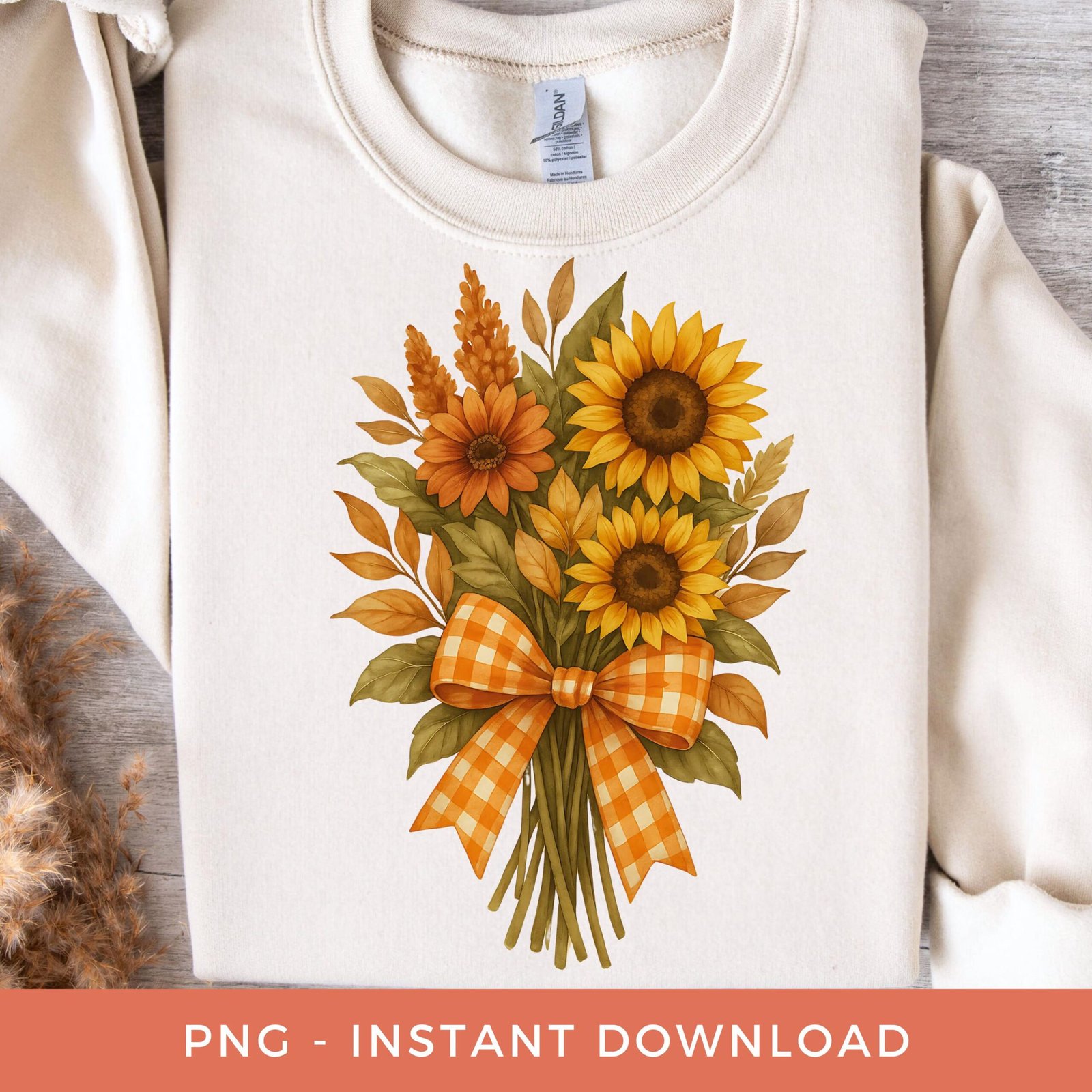 Floral Fall Season PNG, Preppy Coquette Bow Clipart, Autumn Sunflower Bouquet Sublimation, Fall Shirt Design, Retro Flowers PNG.