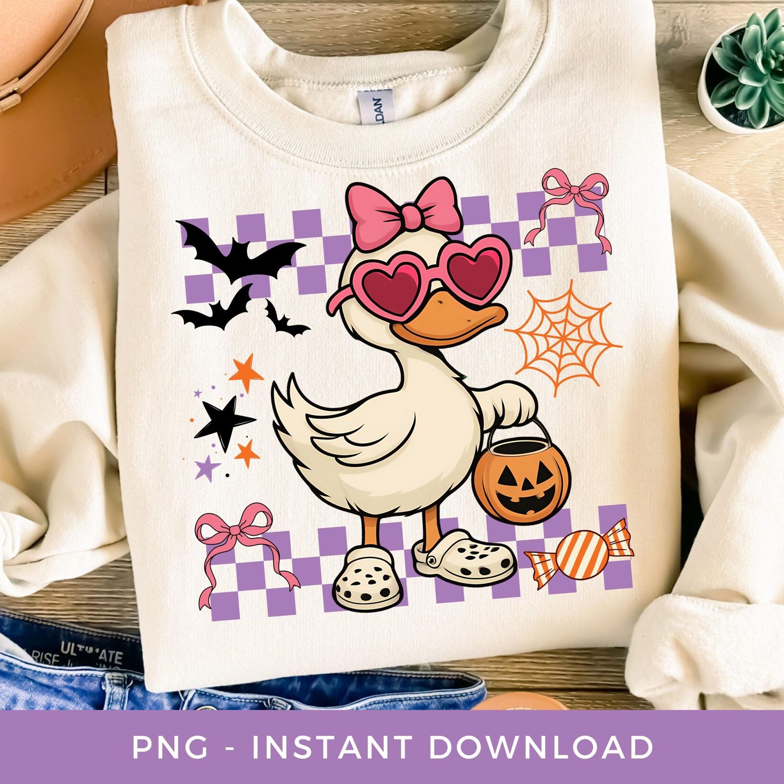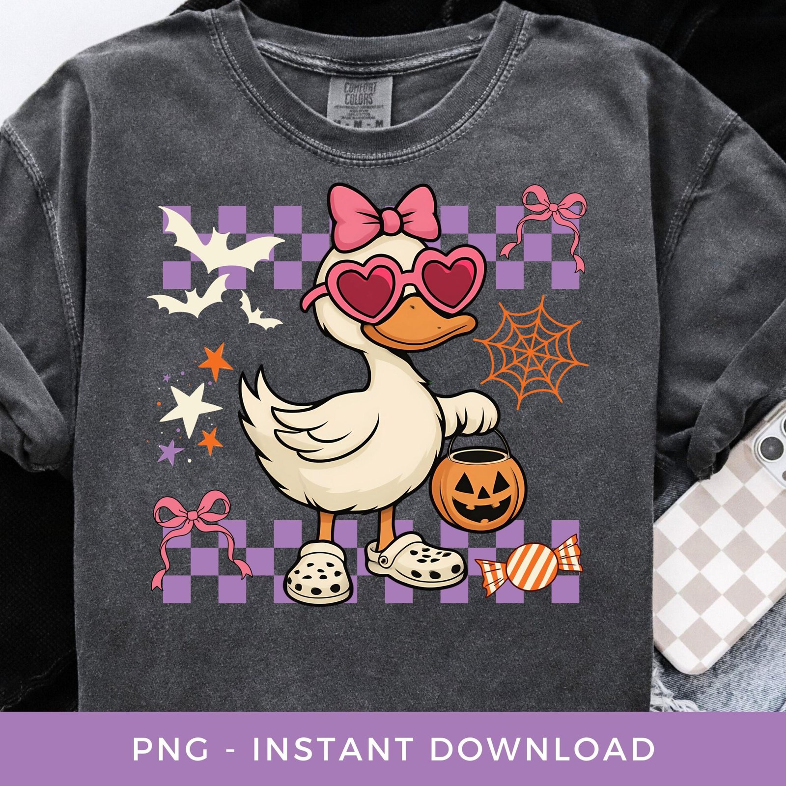 Halloween Goose PNG, Spooky Season Sublimation, Funny Girl Shirt Png, Checkered Goose Png, Custom Kids Trick or Treat Bag Printable Design.