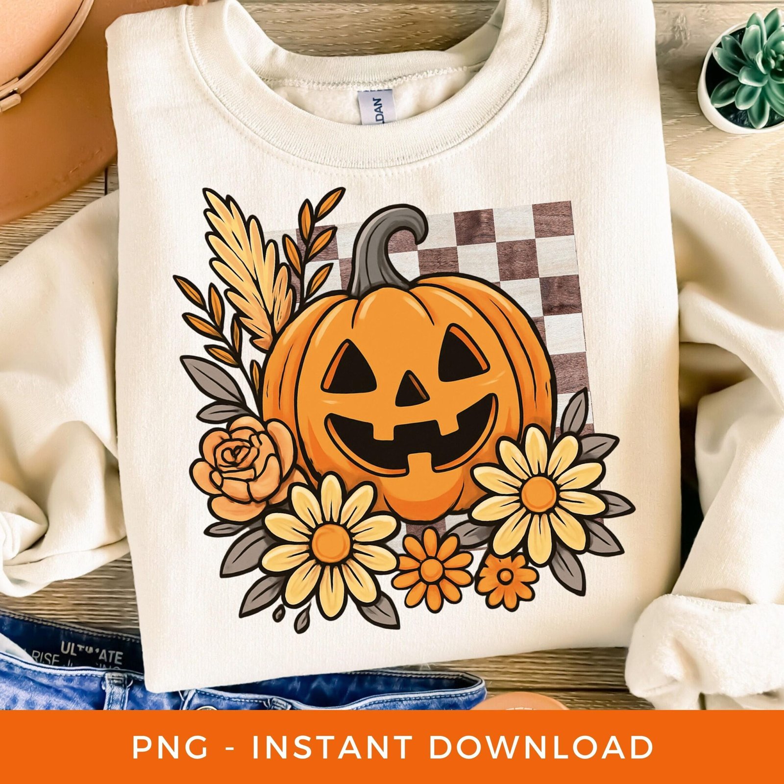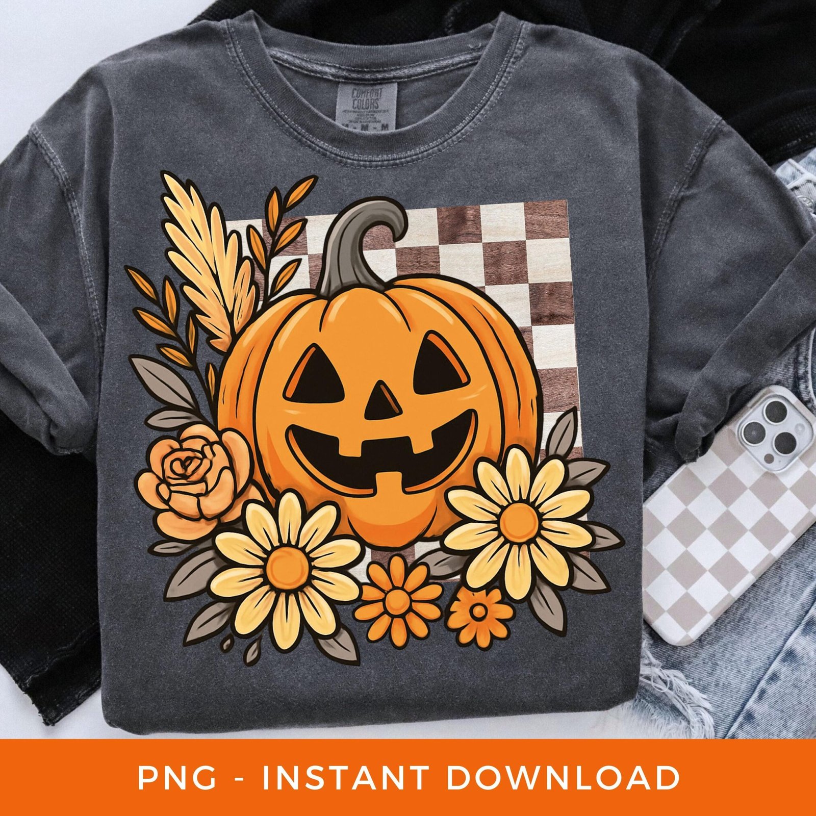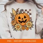 Halloween PNG, Pumpkin Sublimation, Spooky Season DTF, Fall Shirt PNG, Jack O’ Lantern Clipart, Boho Floral Autumn Png, Digital Download.