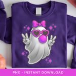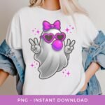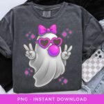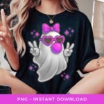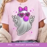 Neon Ghost PNG, Halloween Sublimation, Ghost Blowing Bubble Clipart, Girly Fall Shirt PNG, Printable Spooky Season. Pink Coquette Bow PNG.