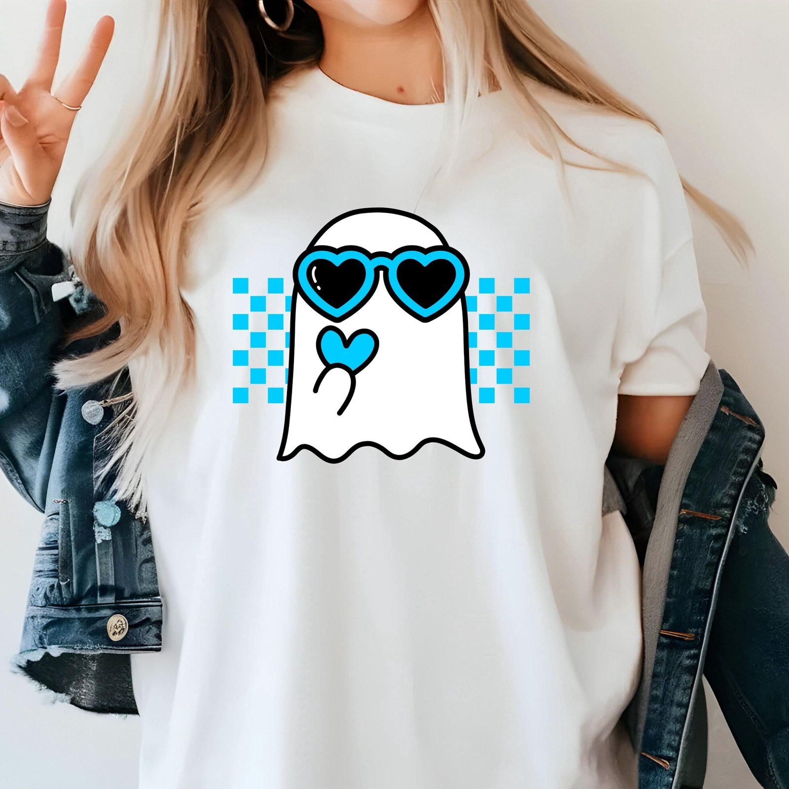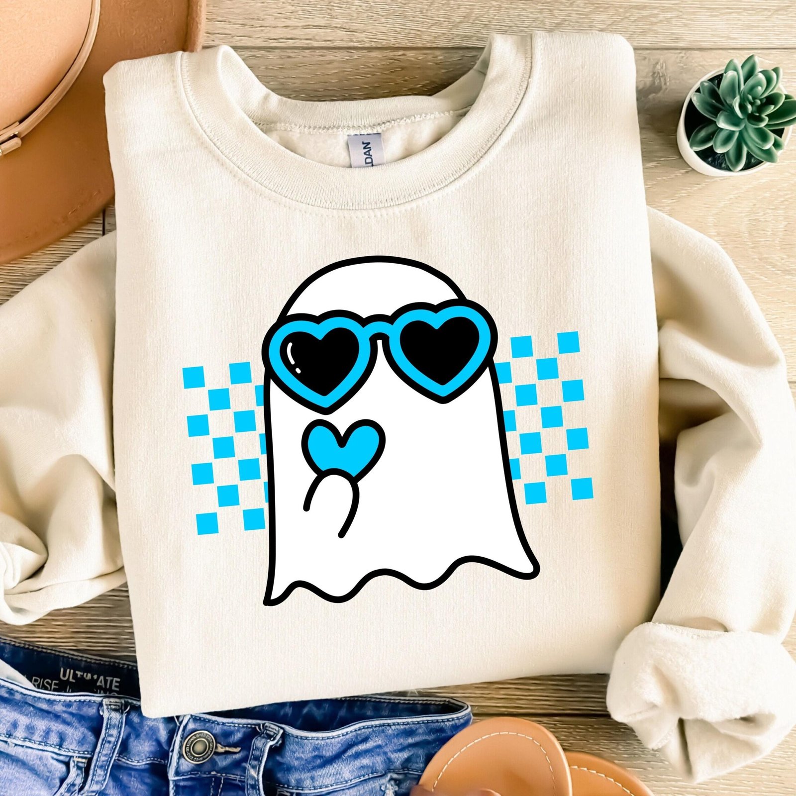 Retro Blue Ghost PNG, Cute Ghost PNG, Halloween Png, Checkered Ghost, Boujee Ghost Png, Spooky Season PNG, Fall Shirt Png, Instant Download.