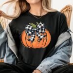 Retro Halloween Pumpkin PNG, Checkered Bow Coquette Pumpkin PNG, Fall Sublimation, Pumpkin Shirt Png, Halloween Png, Pumpkin Coquette Png,