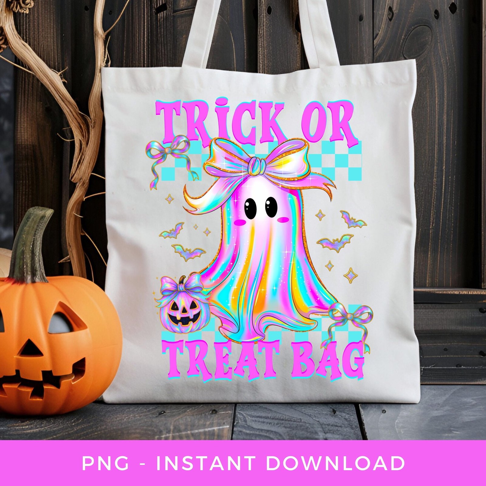Trick or Treat Bag PNG, Kids Halloween Sublimation, Iridescent Ghost Clipart, Bag of Treats PNG, Boo Cute Ghost PNG, Printable Spooky Season