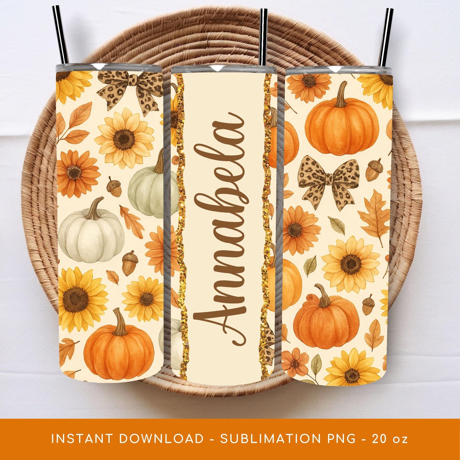 Floral Tumbler Wrap, Preppy Fall Pumpkin PNG Tumbler, Coquette Bow Thanksgiving Sublimation, Custom Name Tumbler Design, Digital Download.
