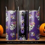 Halloween Tumbler PNG, Cute Halloween PNG Tumbler, Halloween Tumbler Floral Skull Pattern, 20 oz Skinny Tumbler Wrap PNG, Instant Download.