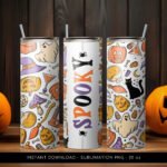 Halloween Tumbler PNG, Spooky Witch PNG Tumbler, Halloween Tumbler Pumpkin Pattern, 20 oz Skinny Tumbler Wrap Design PNG. Instant Download.