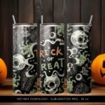 Halloween Tumbler PNG, Trick or Treat PNG Tumbler, Halloween Tumbler Skull Pattern, 20 oz Skinny Tumbler Wrap Design PNG. Instant Download.