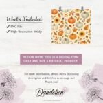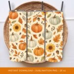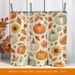 Pumpkin Tumbler Wrap, Fall Floral PNG Tumbler, Autumn Tumbler Sublimation, Sunflowers Pattern 20oz Tumbler Design, Digital Download.