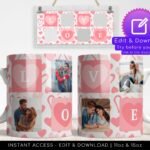 Custom Photo Grid Heart Pattern Mug Design. Try Before you buy it. Sublimation Digital Paper. 11oz | 15oz – High-Resolution Transparent PNG