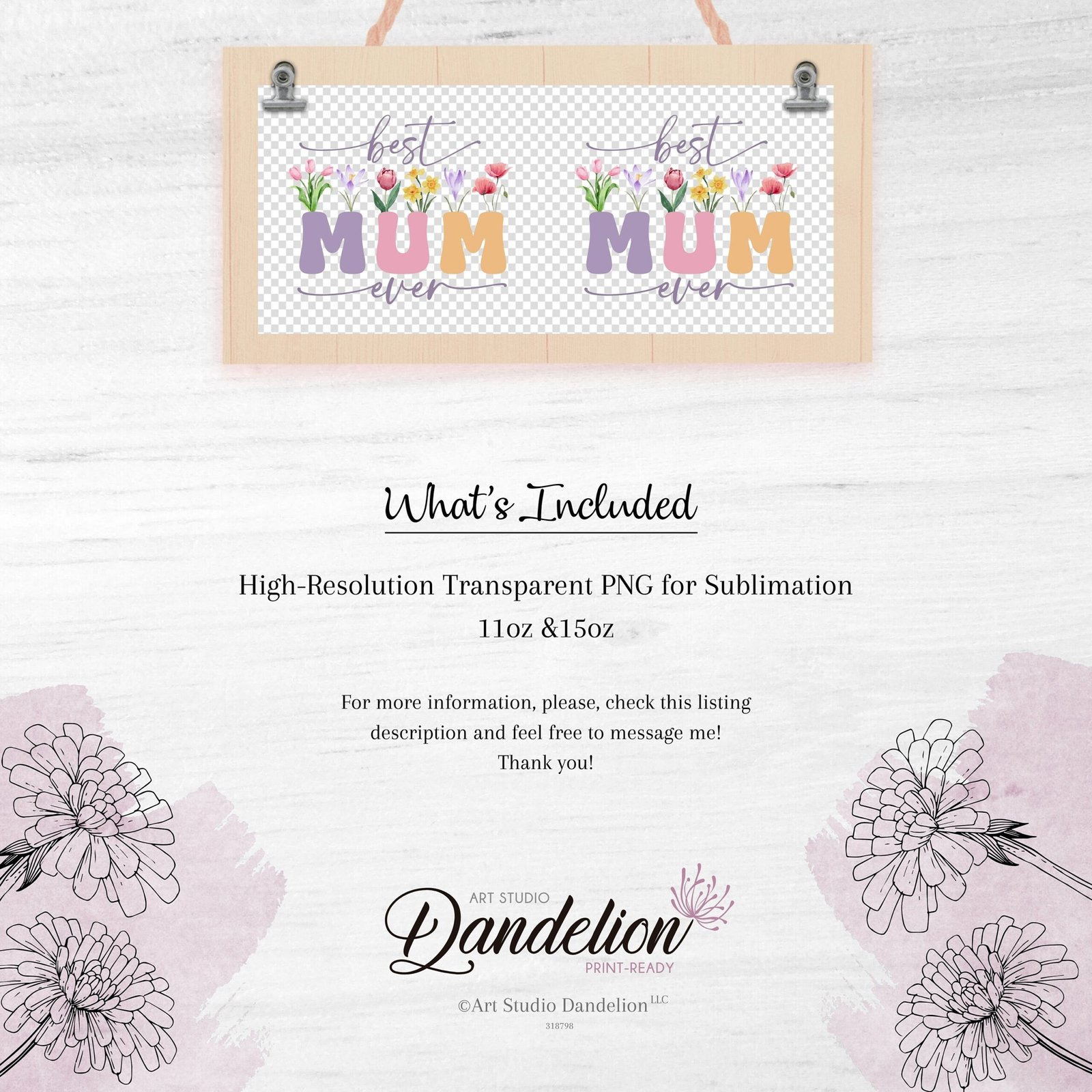 Best Mum Ever Mug Sublimation PNG File. Vintage Floral Mug PNG, Mother Gift Mug, Mum Wildflowers Mug PNG, Coffee Mug Wrap Instant Download